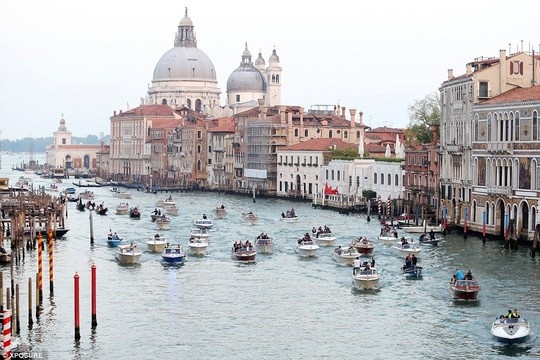 | Đoàn taxi nước của nhà trai tiến về khách sạn nhà gái. |