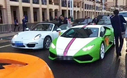 | Dàn siêu xe đón dâu của nhà trai. Ảnh: Qq.com |