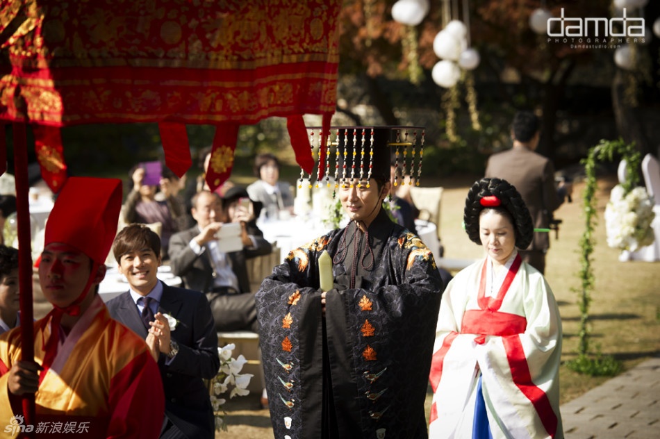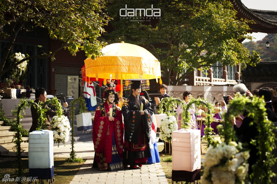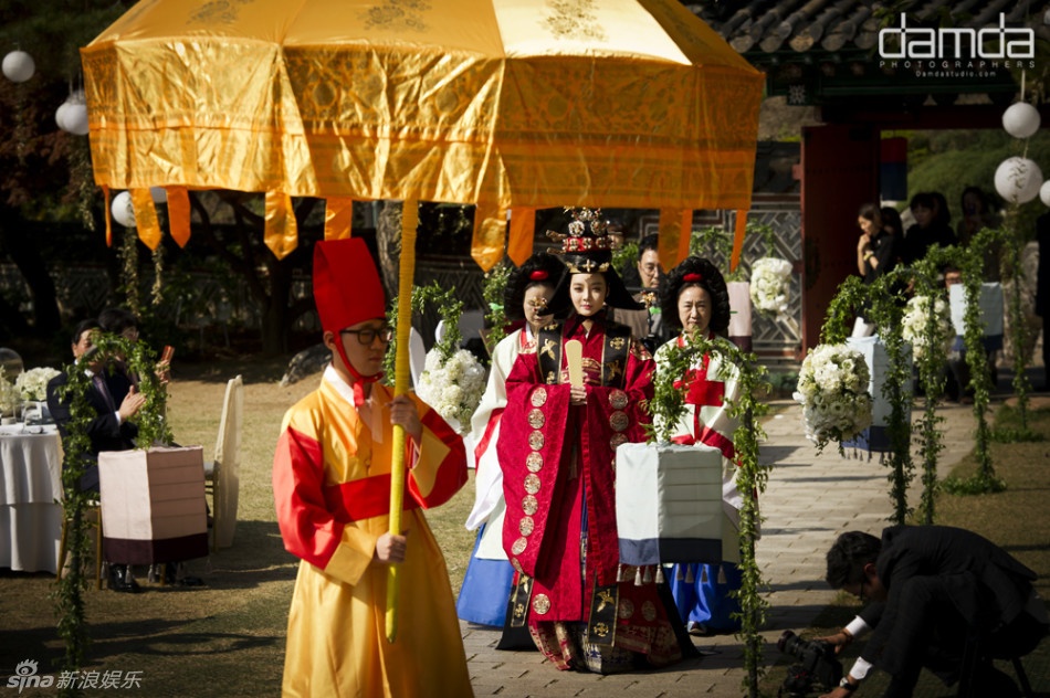 | Tổ chức theo nghi lễ truyền thống, khung cảnh đám cưới của Chae Rim và Cao Tử Kỳ không khác gì một bộ phim cổ trang của Hàn Quốc. |