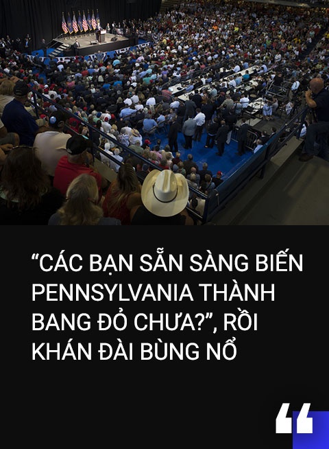 Bên trong, trước đám đông 3.500 người, Rob Gleason, lúc đó là chủ tịch đảng Cộng hòa ở bang Pennsylvania, giới thiệu ứng viên Trump: “Các bạn sẵn sàng biến Pennsylvania thành bang đỏ chưa?”, rồi khán đài bùng nổ sự phấn khích.