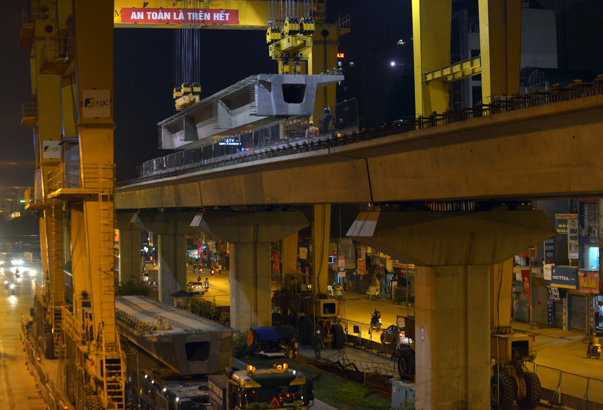 Đêm 25/8, phiến dầm đầu tiên được bắc qua sông Tô Lịch, đoạn Ngã Tư Sở (Hà Nội). Đây là giai đoạn áp chót của việc lắp dầm đường sắt trên cao tuyến số 2 Cát Linh - Hà Đông.
