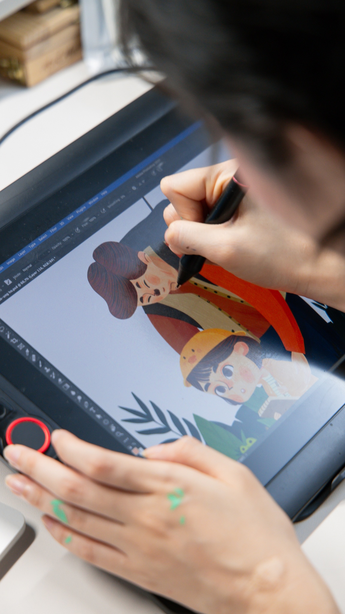 | Về đến nhà lúc gần trưa, tôi ăn nhẹ và thay trang phục thoải mái rồi ngồi vào bàn làm việc. Tôi tốt nghiệp ngành Thiết kế đồ họa, Trường Đại Học Mỹ Thuật TP.HCM. Trong quá trình theo học và tiếp xúc với nhiều dự án khác nhau, tôi nhận ra đam mê dành cho vẽ minh họa. |