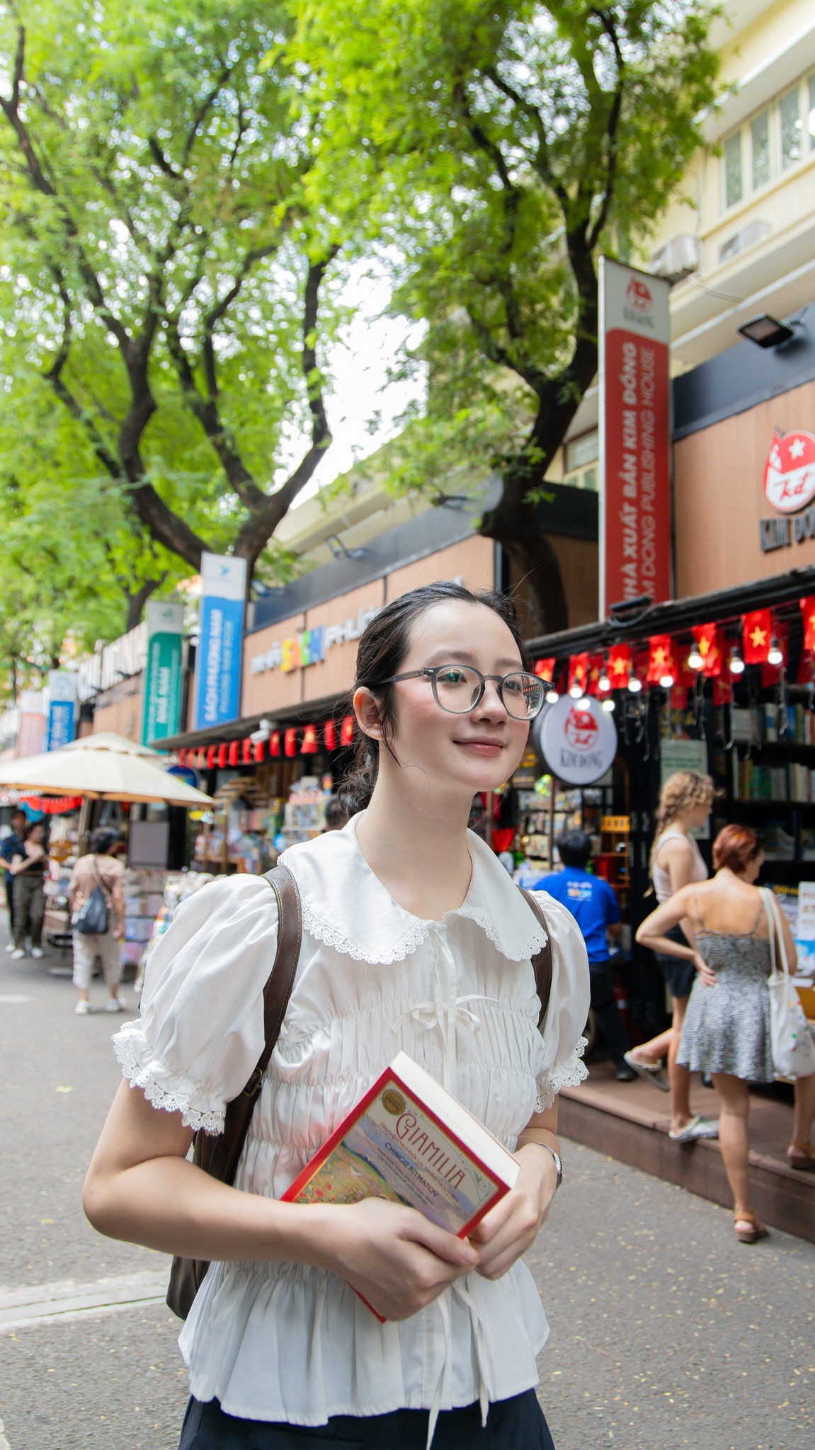 | Con đường rợp bóng cây xanh, không gian mát mẻ, trong giờ hành chính nên không quá đông đúc. Tôi thích nơi đây vì đa dạng đầu sách, đặc biệt nhiều sách thiếu nhi với phong cách minh họa phong phú. Nhìn những sắc màu rực rỡ trên trang giấy luôn tiếp thêm cho tôi nguồn cảm hứng sáng tạo. |