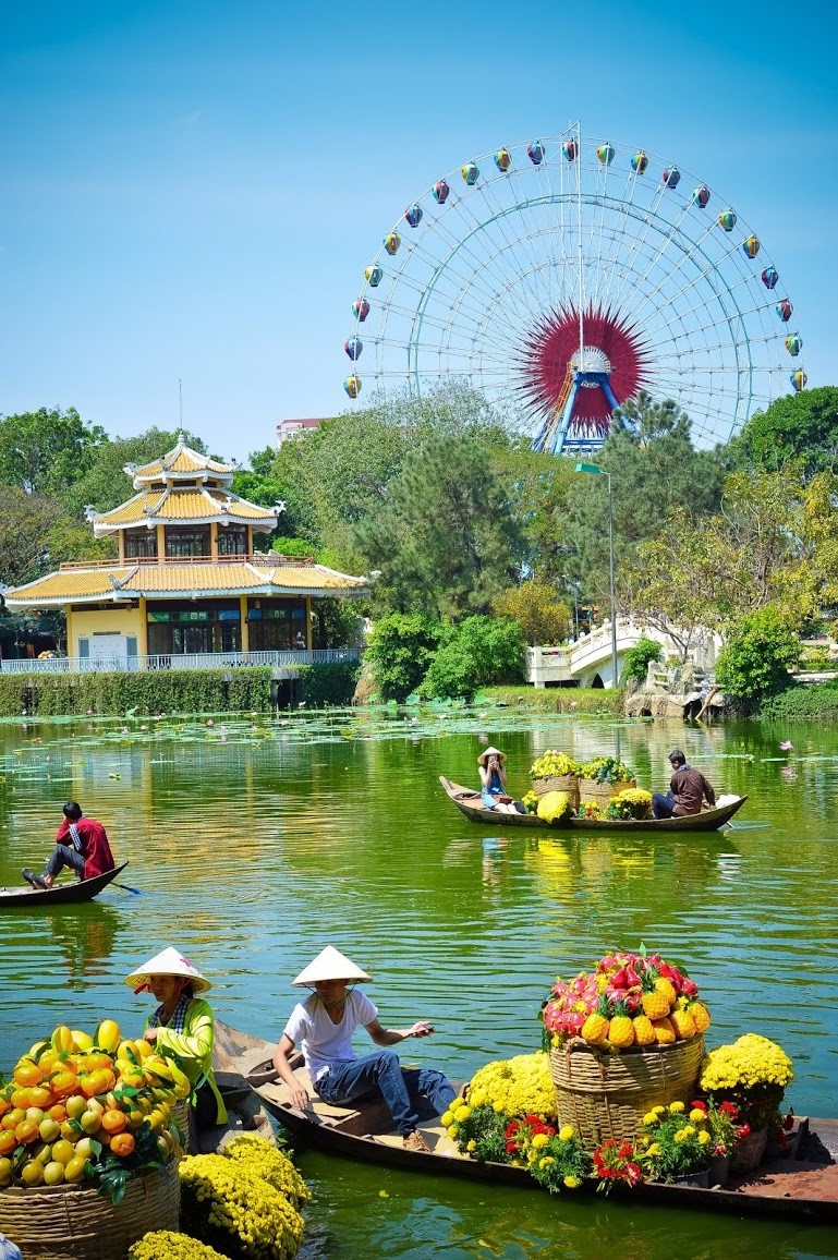 | Đến Đầm Sen dịp Tết Bính Thân 2016, du khách có thể ngắm nhìn hàng trăm loài hoa được trang trí kỳ công và đẹp mắt. Đây cũng là địa điểm lý tưởng để chị em ghi lại khoảnh khắc rực rỡ dưới nắng xuân. |