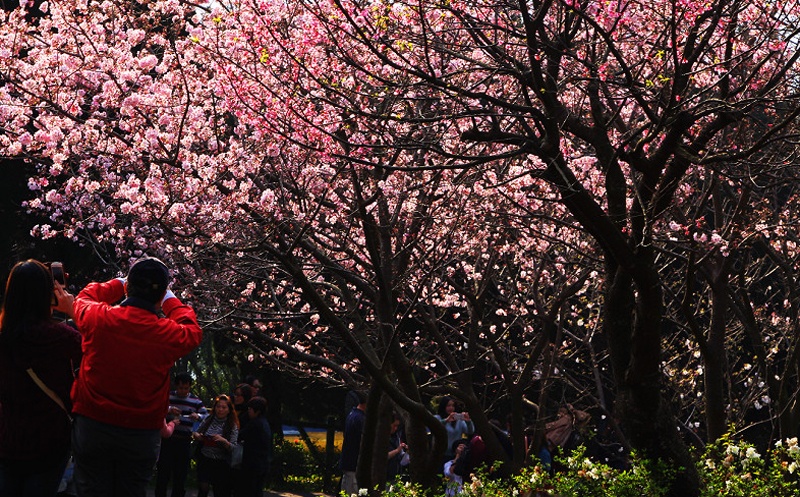 Có đến hơn 1000 loại hoa đào được trồng và mọc hoang trên các dãy núi ở công viên quốc gia Dương Minh Sơn, tạo thành bức tranh lộng lẫy đầy sắc hồng, đỏ và trắng.
