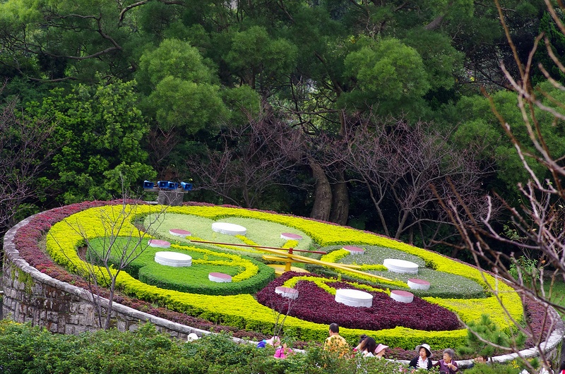 Khi vừa đến cổng công viên, du khách sẽ ấn tượng ngay với chiếc đồng hồ được trồng bằng hoa có đường kính 22 feet.