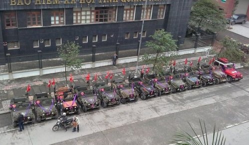 Đám rước dâu bằng toàn xe Jeep cổ ở Quảng Ninh