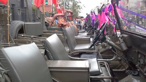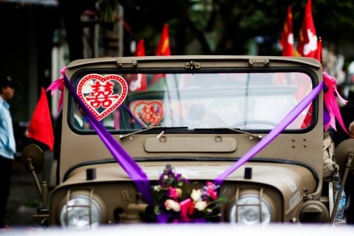 Những chiếc Jeep A2, Willy hầm hố thời chiến, nay lại mềm mại trong sắc hoa cưới.