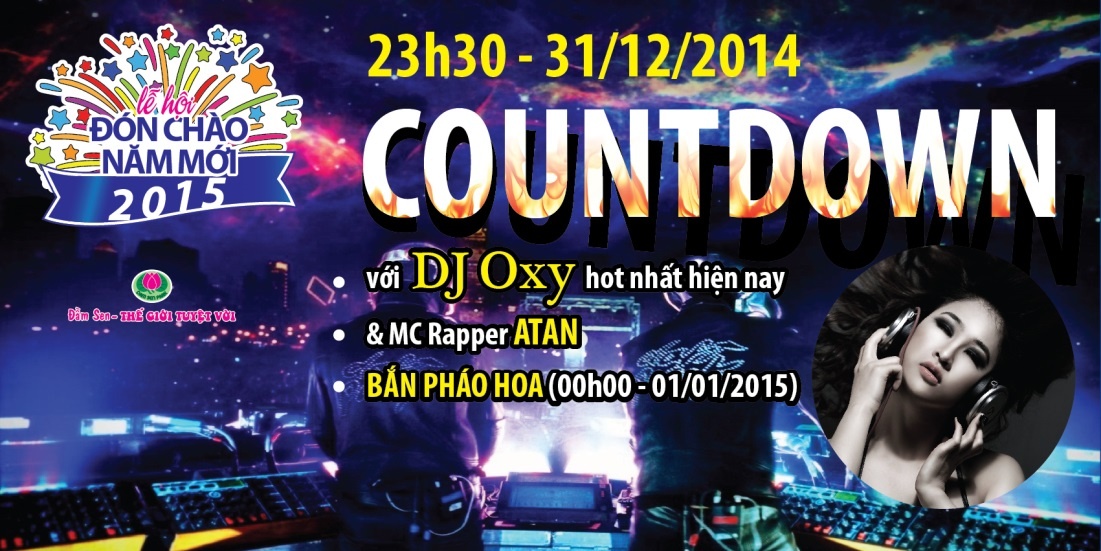 30 phút trước thời khắc đếm ngược, DJ Oxy, rapper ATAN và nhóm nhạc Apple sẽ khuấy động bầu không khí lễ hội bằng những bản nonstop remix cực mạnh và những hit mới. Khi đồng hồ xuất hiện trên màn hình, tất cả chúng ta cùng đếm ngược 60 giây cuối cùng của năm 2014 và chào đón năm mới 2015 với nhiều nhiều ước vọng tốt đẹp. Ngay giây đầu tiên của năm 2015, màn biểu diễn pháo hoa chào năm mới đầy ấn tượng sẽ bắt đầu và kéo dài 15 phút, tại cầu Cửu Khúc .