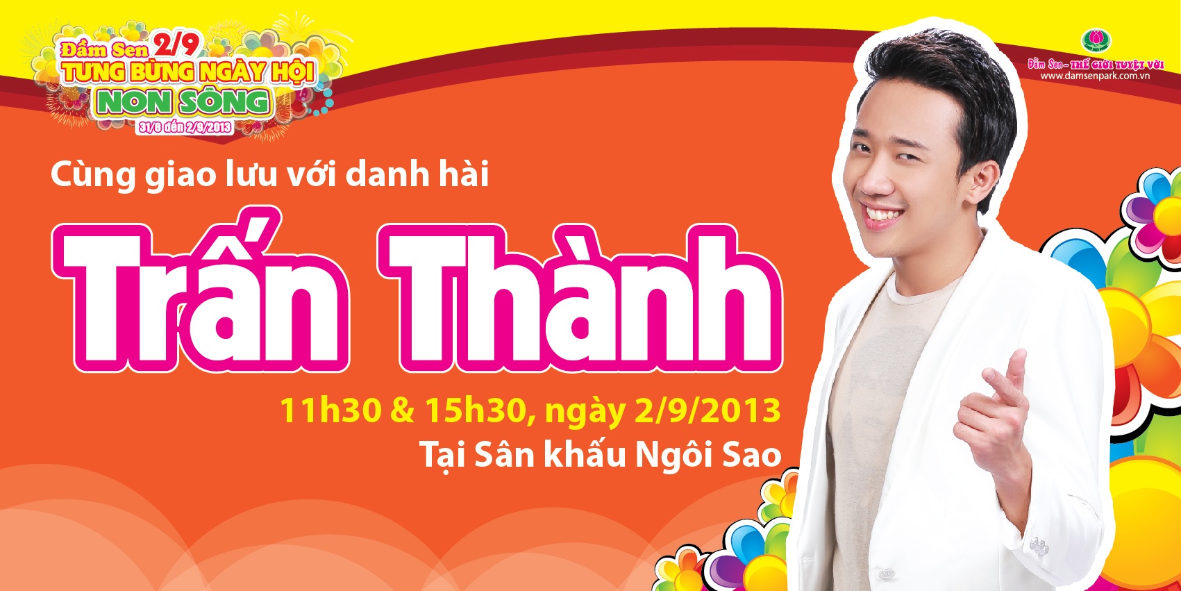 2. Gặp gỡ danh hài Trấn Thành: 2/9 năm nay, người hâm mộ sẽ được tái ngộ cùng cây hài trẻ tài năng Trấn Thành tại CVVH Đầm Sen qua các tiểu phẩm hài mới, cùng sự tham gia diễn xuất của bạn diễn ăn ý Minh Đức hứa hẹn mang lại những tràng cười sảng khoái cho du khách (vào lúc 11h30 và 15h30 ngày 2/9 tại sân khấu Ngôi Sao).