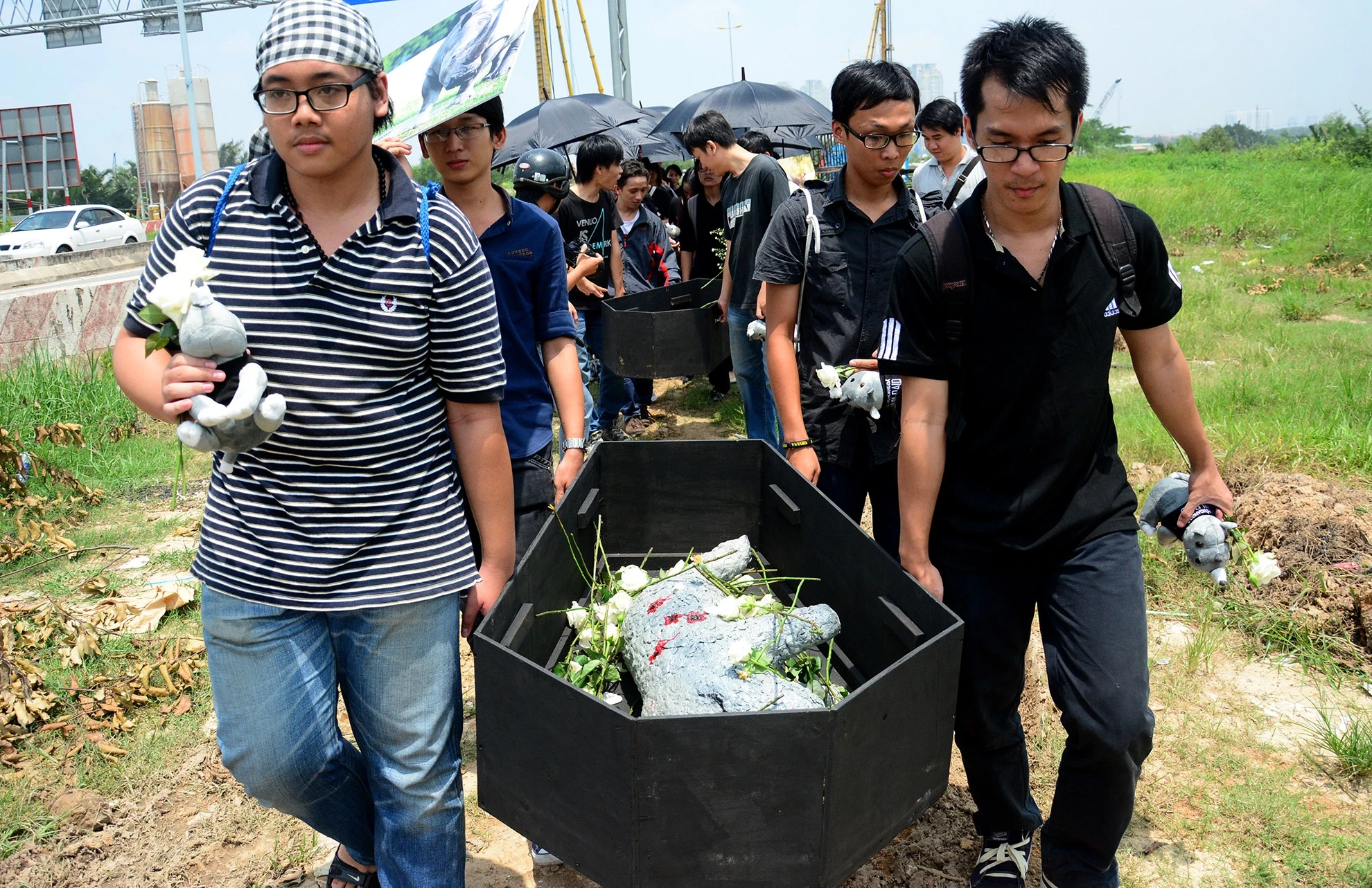 Đám tang tê giác bị bắn như thật tại Sài Gòn