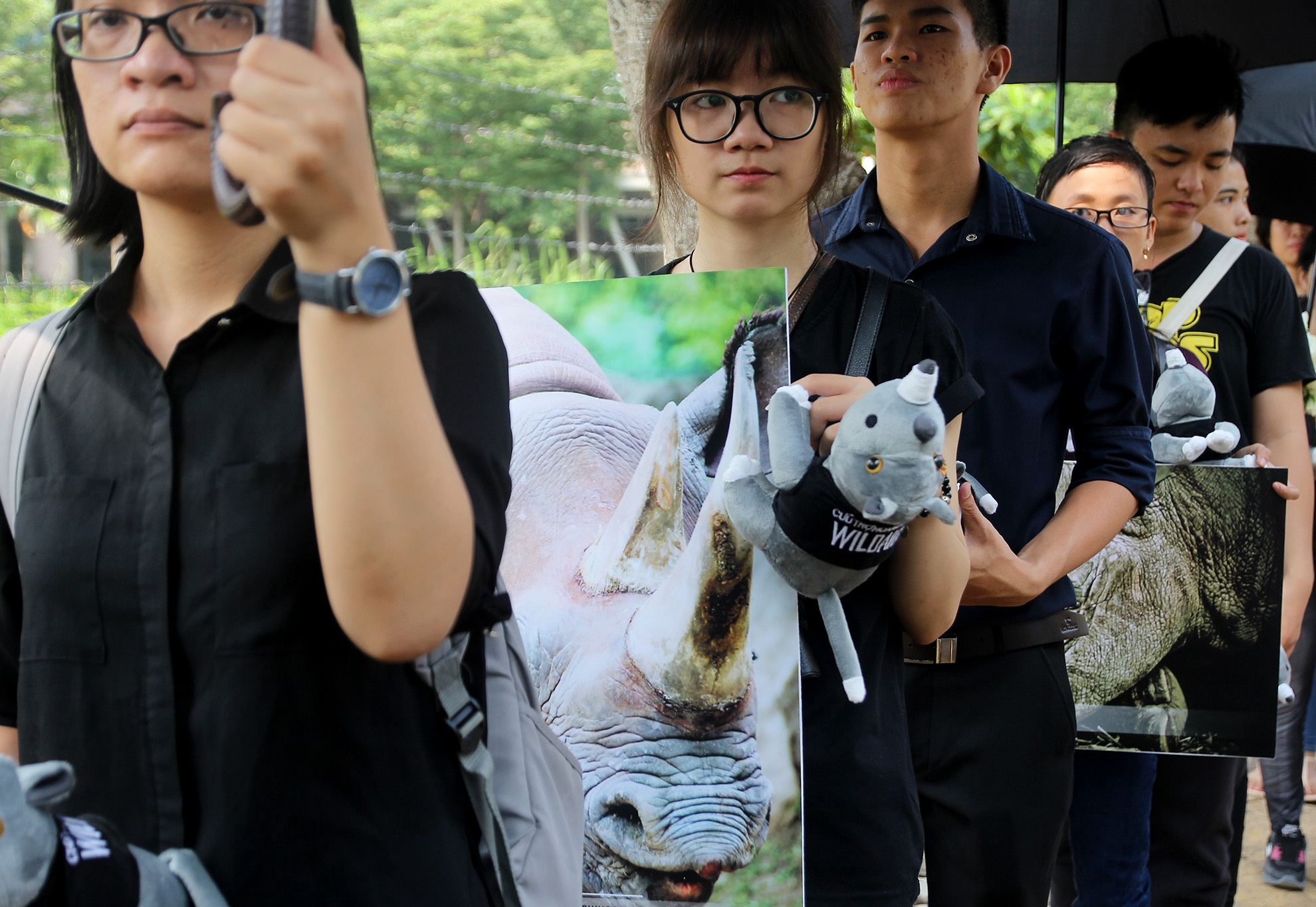 | Họ mặc áo và mang ô cùng màu đen, tay bê di ảnh, thú bông tê giác, cầm theo hoa trắng xuất phát từ đường Nguyễn Văn Hưởng (quận 2) trong tâm trạng thương tiếc, đau lòng và căm phẫn trước sự tàn ác của những tên thợ săn hám lợi. |