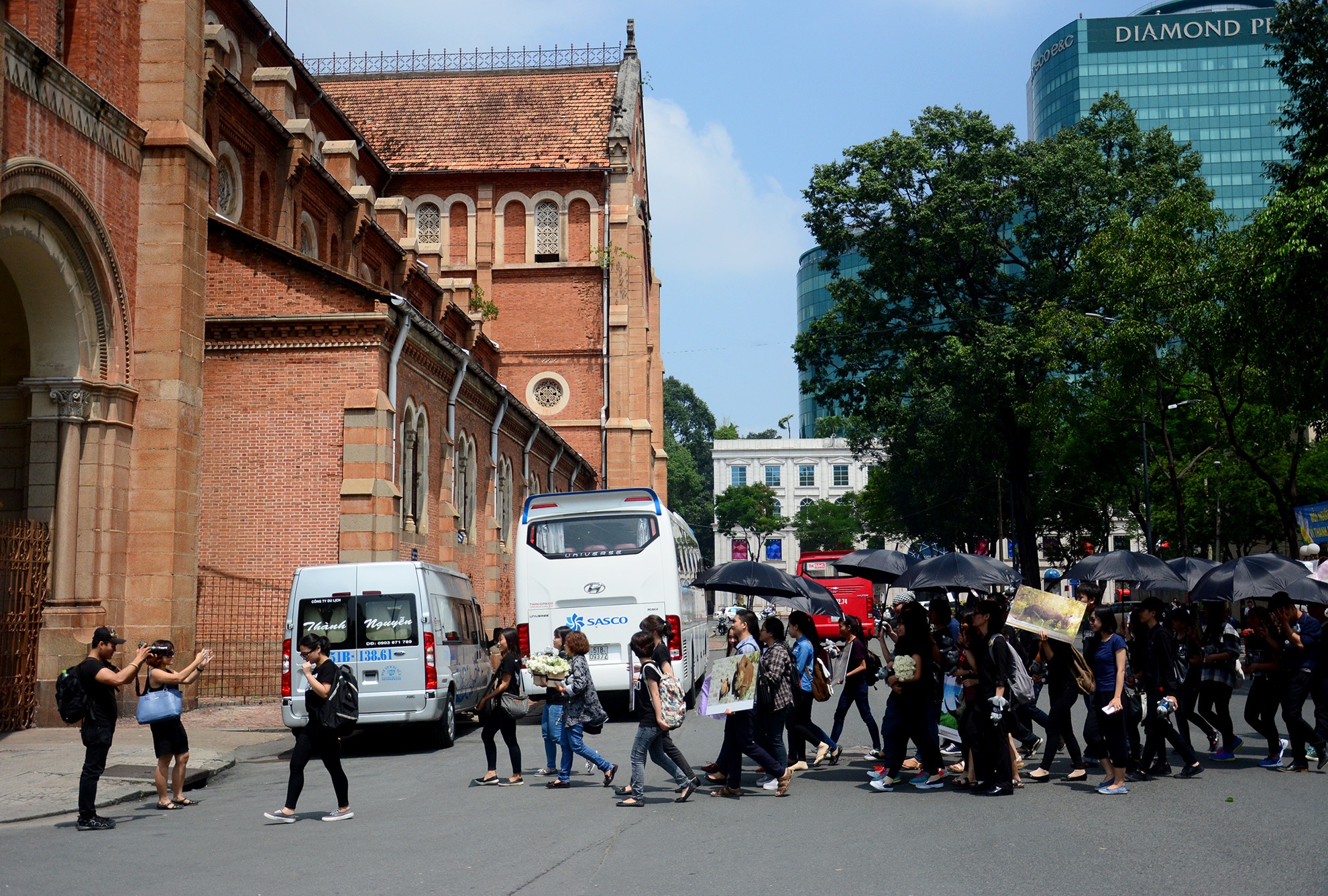| Những người yêu động vật đi bộ qua các khu vực đông người ở trung tâm thành phố như Nhà thờ Đức Bà, Công viên 30-4, đường Đồng Khởi, Lê Thánh Tôn, phố đi bộ Nguyễn Huệ... để tuyên truyền và lên án nạn săn bắt động vật hoang dã. |