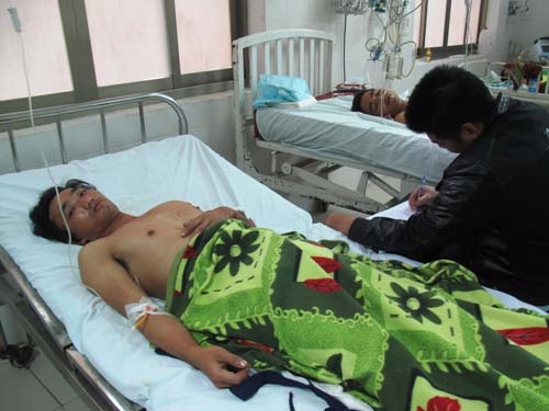| Các nạn nhân Nguyễn Quốc Tuyến, Trần Minh Thu và Nguyễn Văn Hậu đang cấp cứu tại bệnh viện đa khoa Phú Yên. |