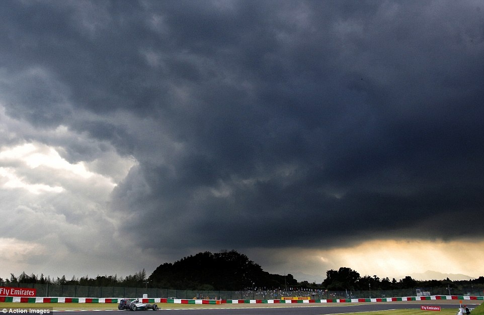| Bầu trời với mây đen vần vũ báo hiệu một chặng đua không yên ả. |