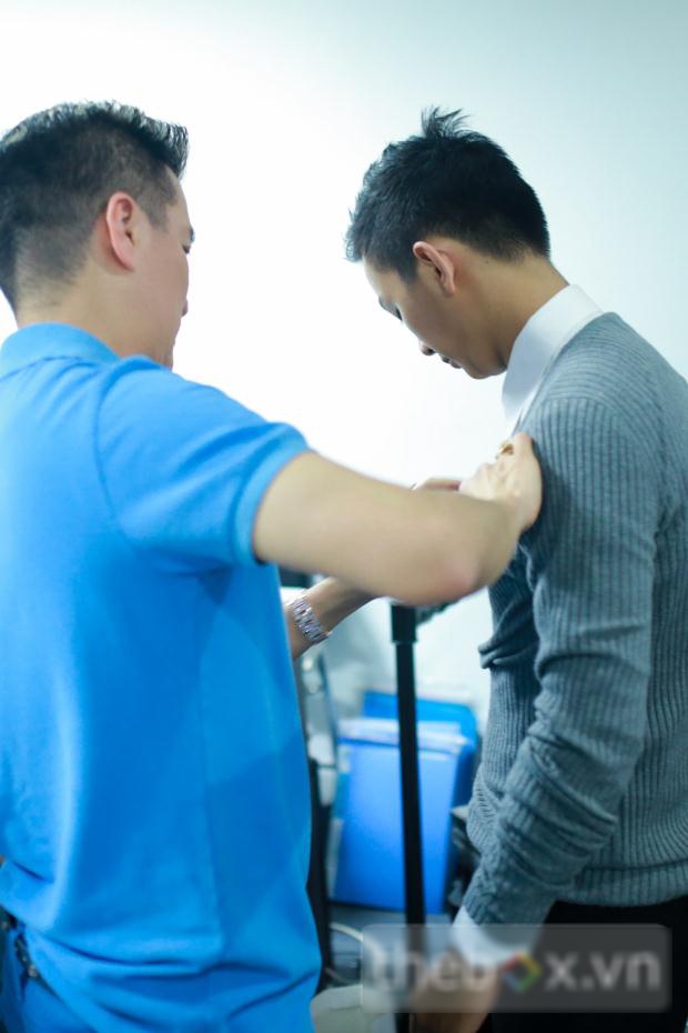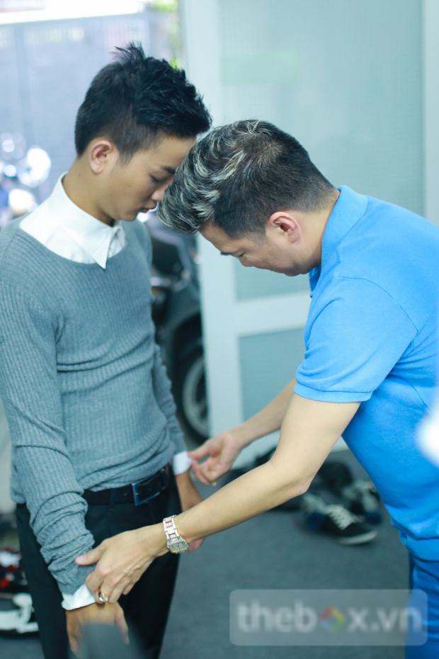 | Những hình ảnh của Mr. Đàm và Hoài Lâm ở hậu trường buổi chụp hình. |