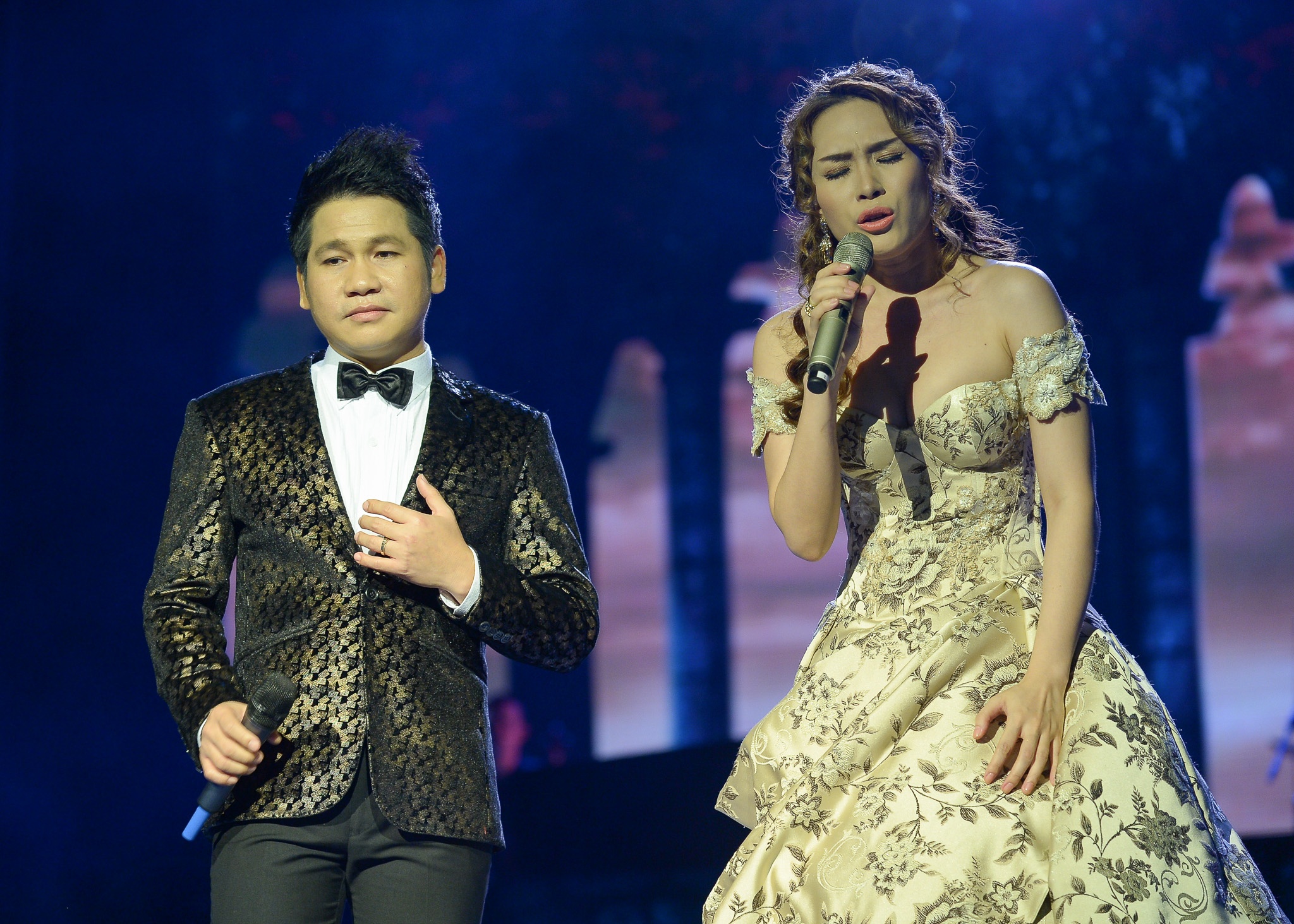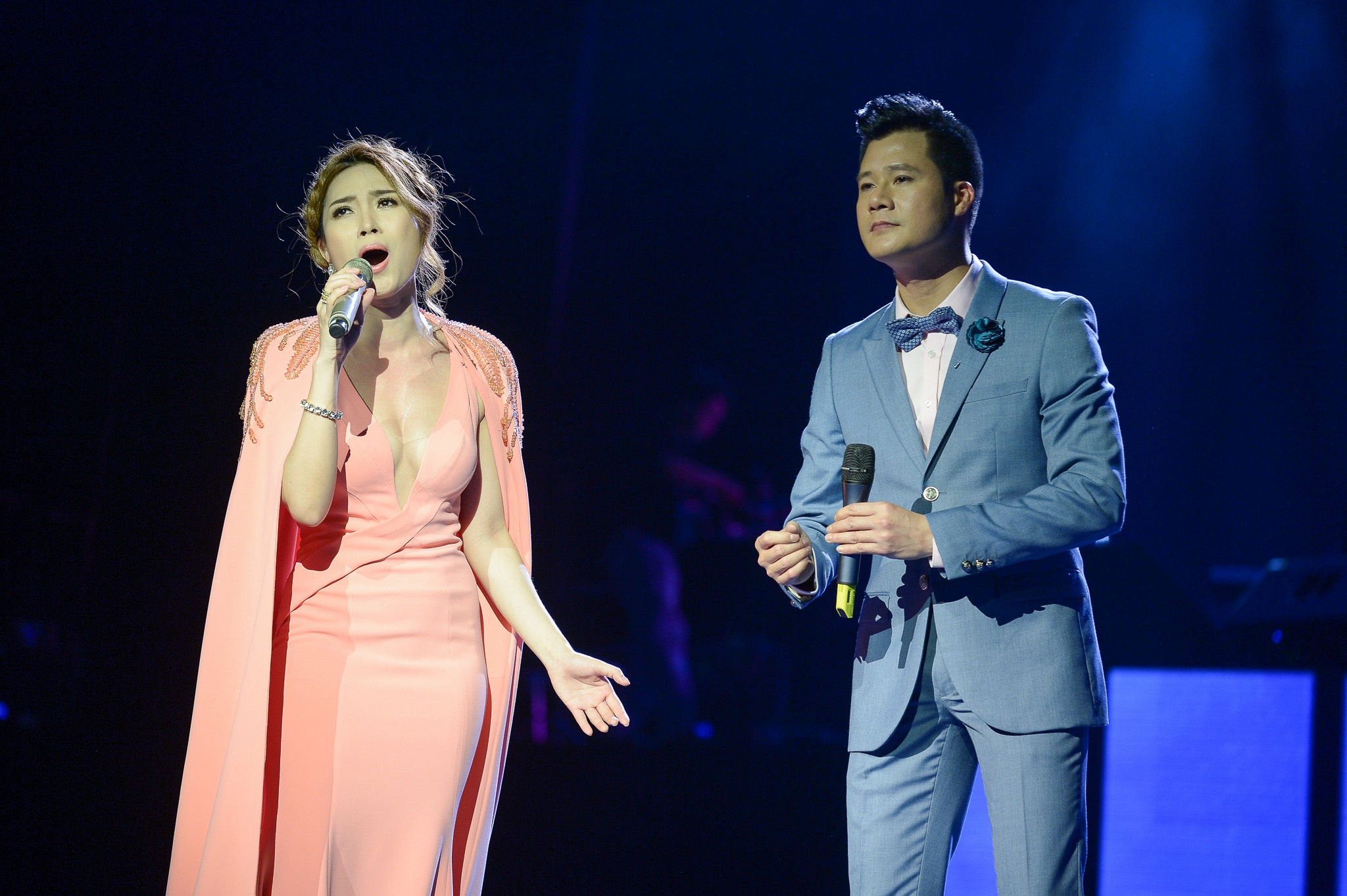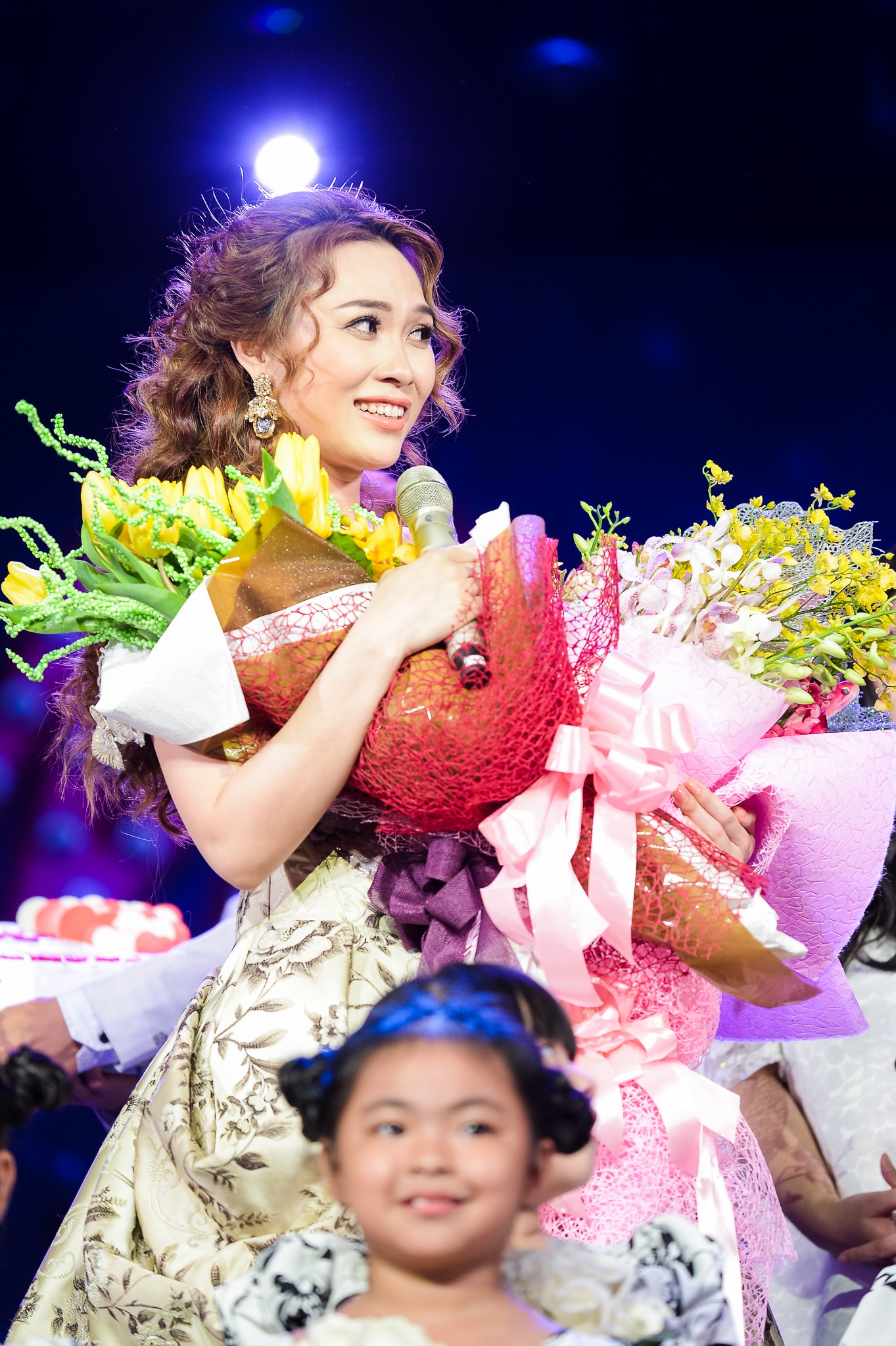 Mỹ Tâm cảm động trước sự chu đáo của người anh thân thiết. Cô càng hạnh phúc hơn khi nghe Đàm Vĩnh Hưng tiết lộ, anh đã đứng dưới sân khấu đợi rất lâu và hồi hộp để chờ đợi giây phút tặng hoa cho cô. |