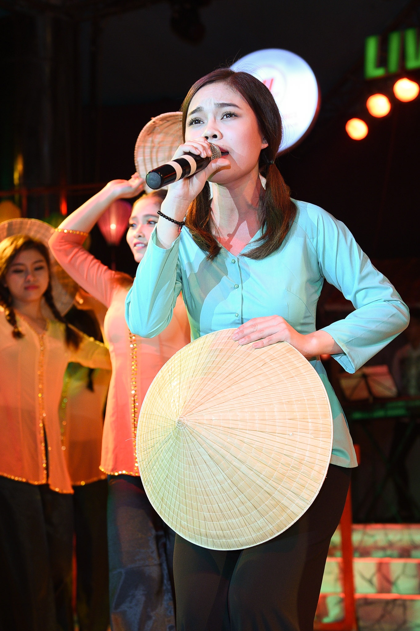 | Thúy Nga dù không tham gia biểu diễn vẫn đến ủng hộ đàn em. |