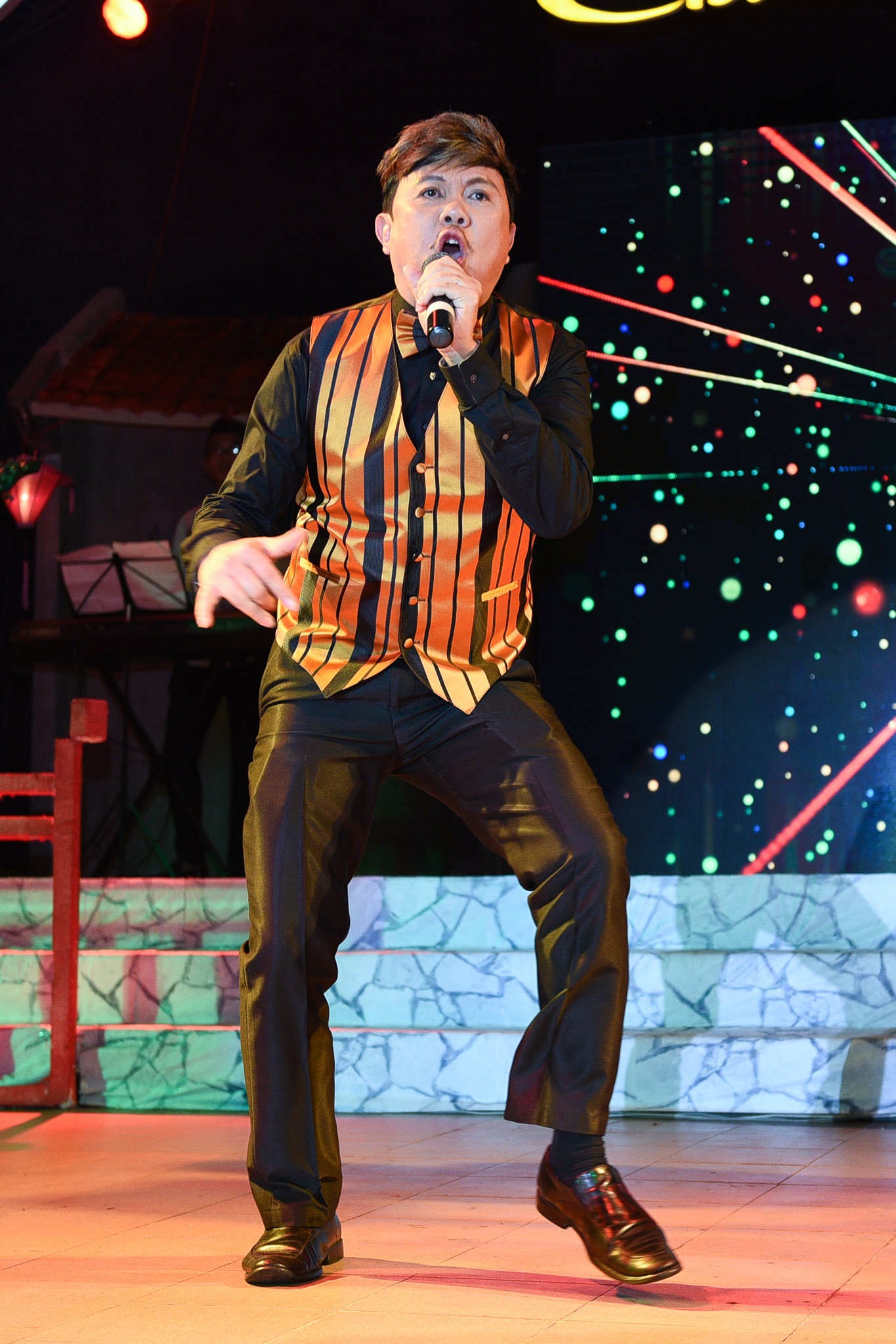 | Ông hoàng nhạc Việt luôn biết cách thu hút khán giả mỗi khi đứng trên sân khấu. Không chỉ biểu diễn sôi động cùng vũ đoàn, anh còn trò chuyện hóm hỉnh với khán giả. |