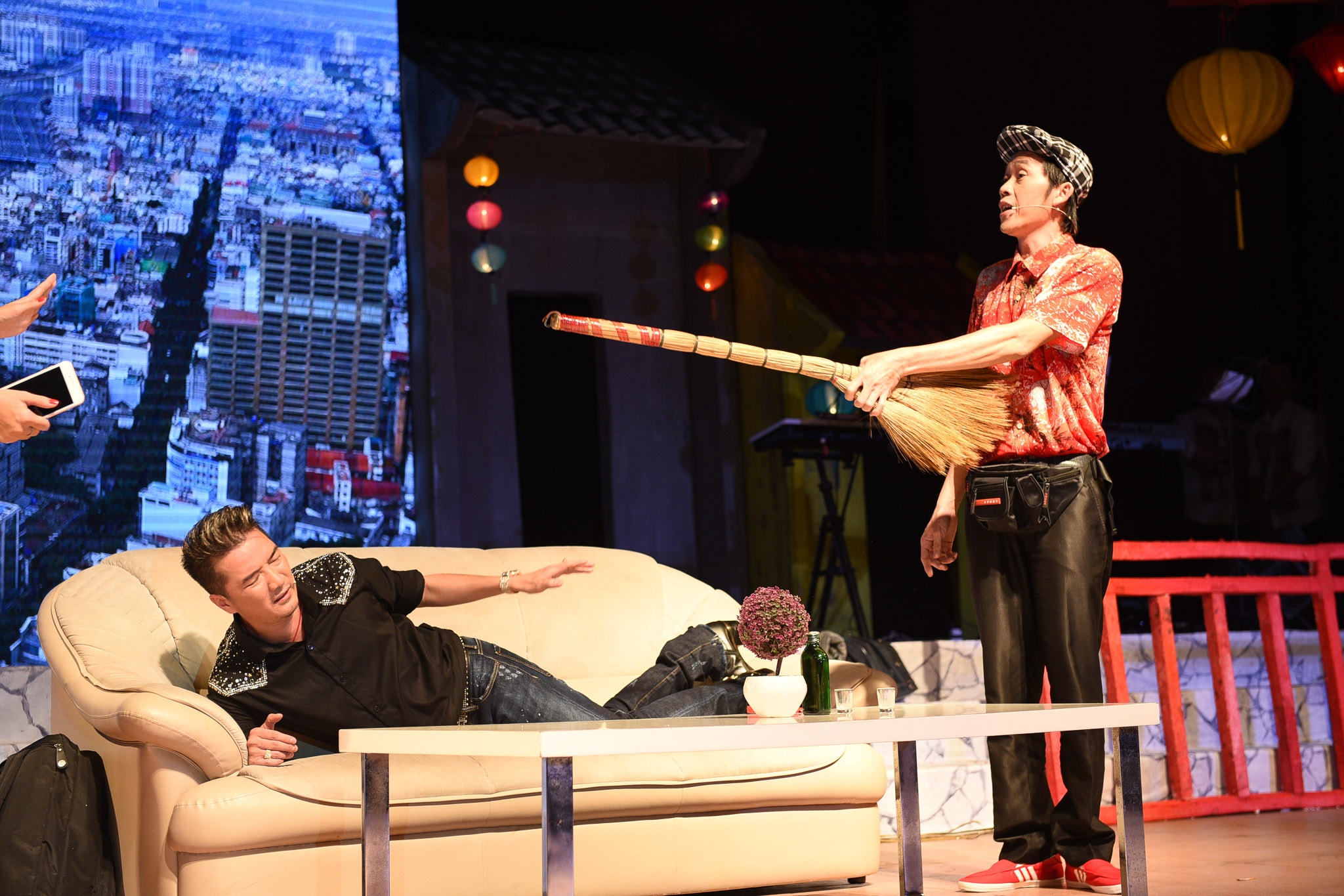 | Trong live show Chàng hề xứ Quảng, Cẩm Ly không hát mà chỉ tham gia một tiểu phẩm. Trường Giang luôn chọc đàn chị: "Cái gì chị ấy cũng làm được. Có lẽ chỉ có làm xiếc là chưa thử". |