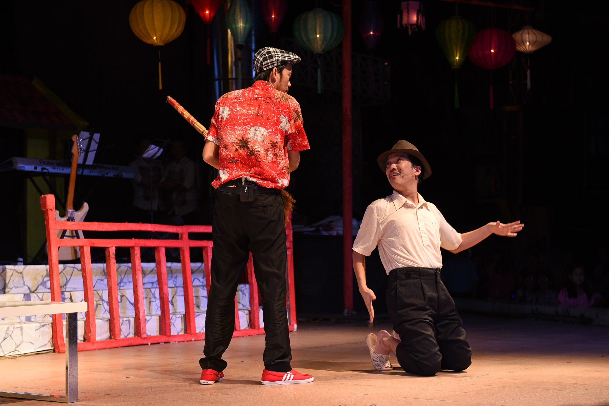 | Tối qua (5/11), live show Chàng hề xứ Quảng, chủ đề Anh không cao, nhưng người khác ... vẫn thấy lùn đã diễn ra tại sân khấu Trống Đồng. Live show đầu tiên của Trường Giang sau 10 năm đi diễn có sự tham gia của dàn sao hùng hậu. Hai cái tên không thể thiếu trong đêm diễn là Hoài Linh và Đàm Vĩnh Hưng. |