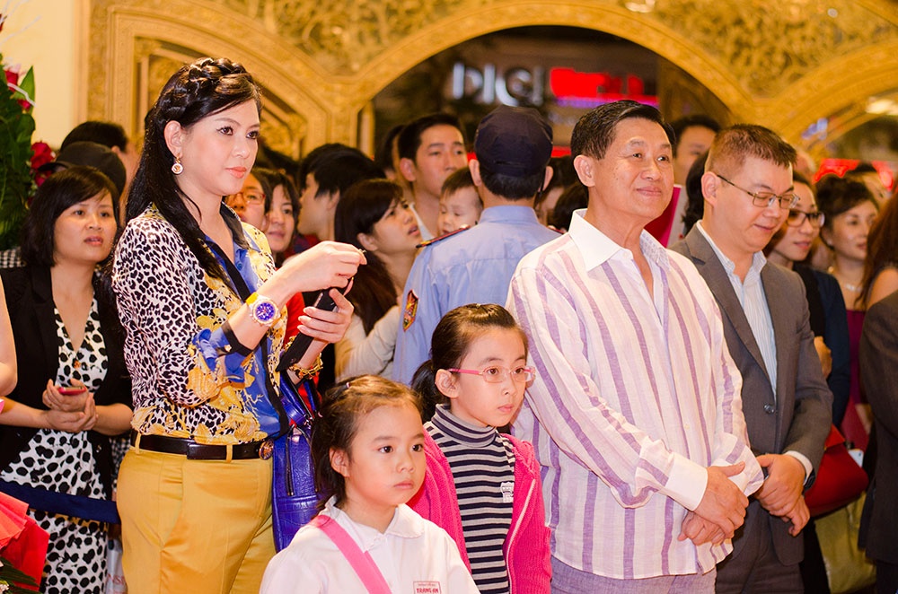 Cùng xuất hiện trong một sự kiện nhưng bố mẹ chồng Hà Tăng không có nhiều cơ hội sánh đôi bên nhau vì bận rộn lo chuyện chuẩn bị, đón khách...