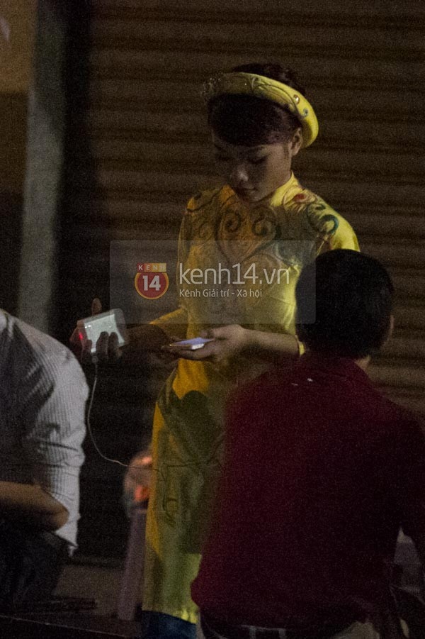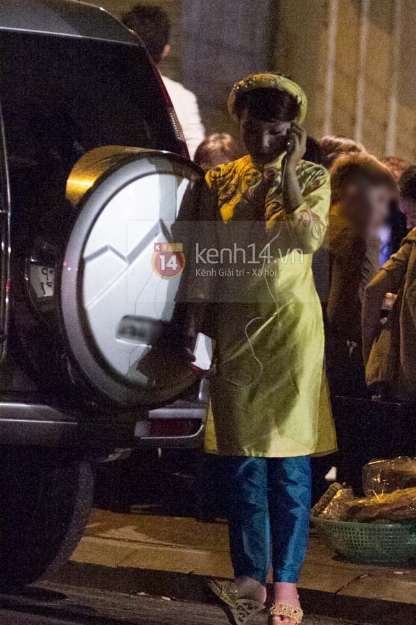 | Trong khi đó, Thảo My đang đứng ở một góc nói chuyện với gia đình... |