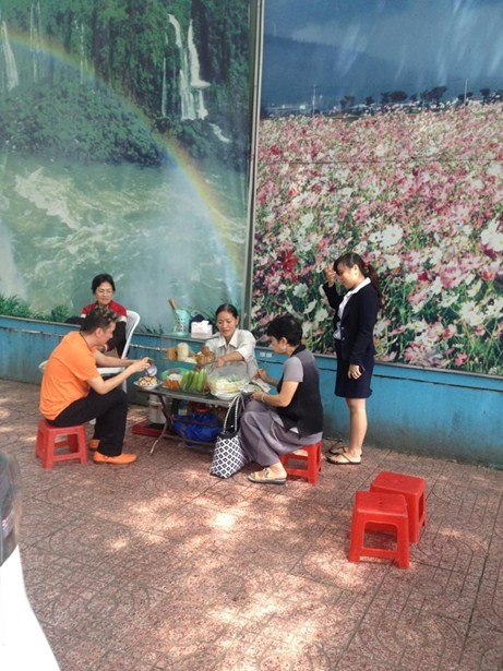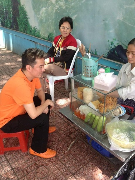 | Giản dị ngồi ăn vỉa hè như bao người bình thường khác. |