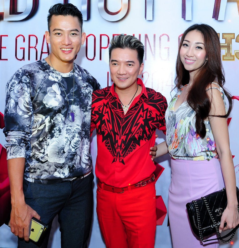 | Đàm Vĩnh Hưng chụp cùng người mẫu Lê Trung Cương và ca sĩ Lều Phương Anh. |