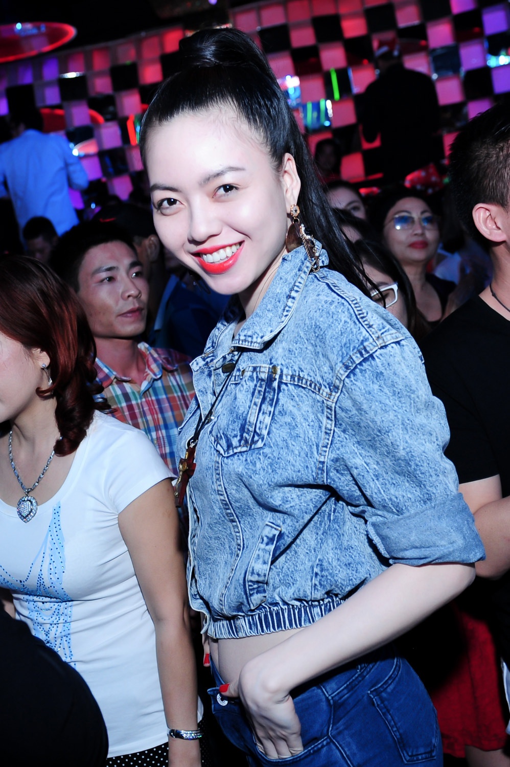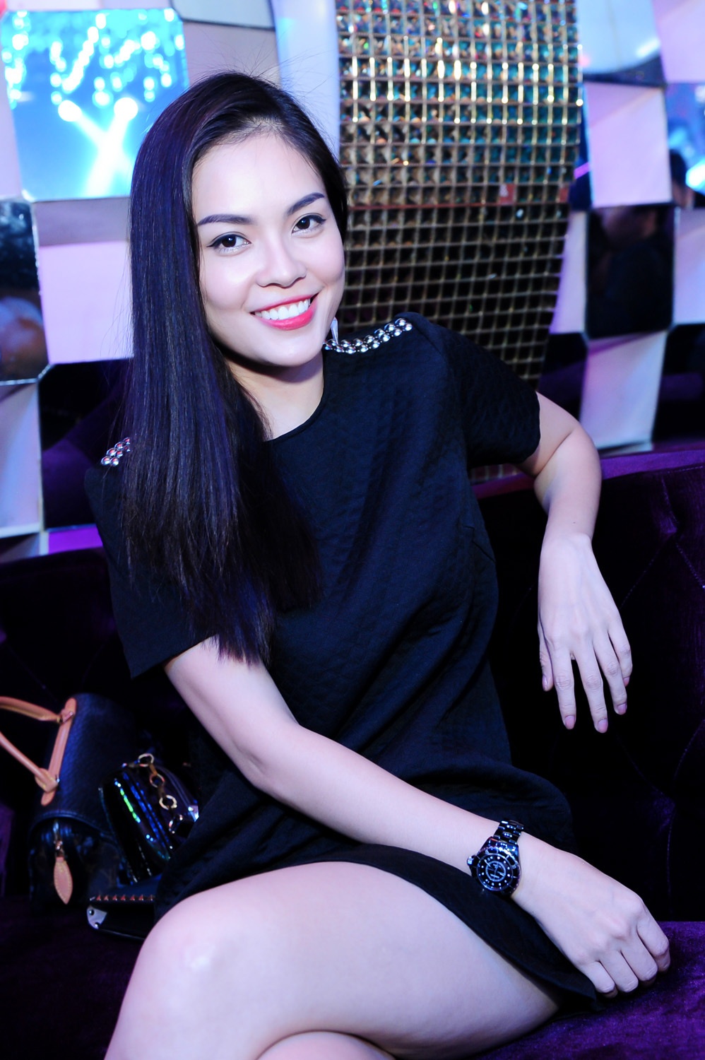 | Nữ diễn viên Dương Cẩm Lynh lặng lẽ ngồi một chỗ quan sát các đồng nghiệp hát và nhảy trong bar. |