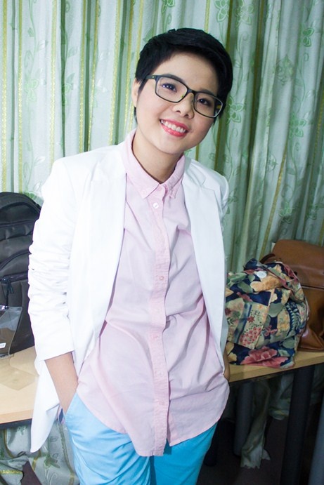 | Nàng á quân The Voice 2012 tranh thủ xem lại kịch bản. |