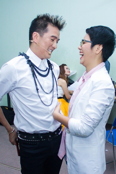| Đàm Vĩnh Hưng không ngại xắn tay vào giúp đỡ, cũng như có những lời góp ý cho học trò trước giờ lên sóng. Khác với hình ảnh khó tính lúc luyện tập, ngoài đời anh rất gần gũi, anh hỏi han và giúp đỡ các học trò chuẩn bị cũng như động viên cho các thí sinh. |
