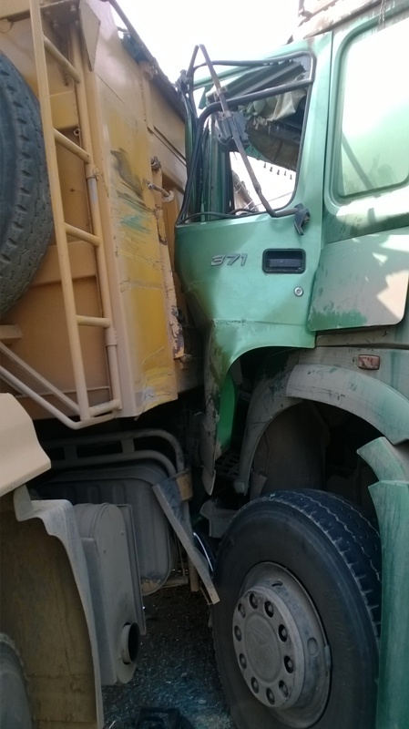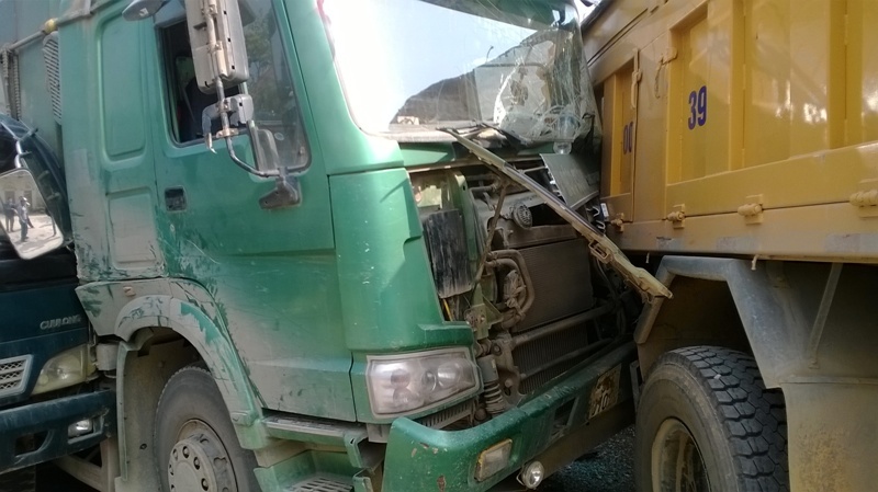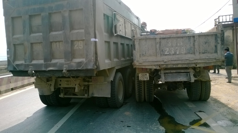 Thời điểm trên, xe tải màu vàng BKS 36C… chở đất đang chạy từ trong làng ra quốc lộ 1A thì bất ngờ va chạm mạnh với chiếc xe tải BKS 36M…chạy hướng Bắc vào Nam.
