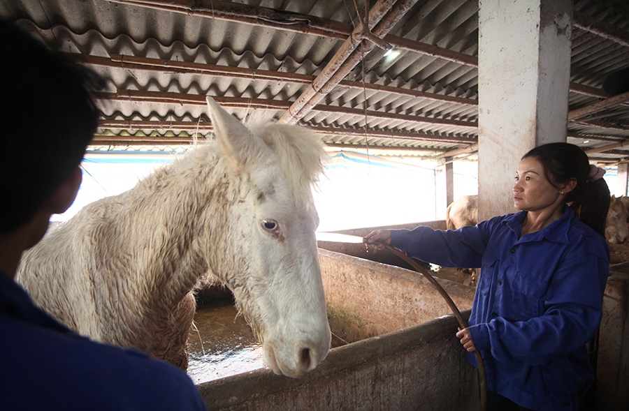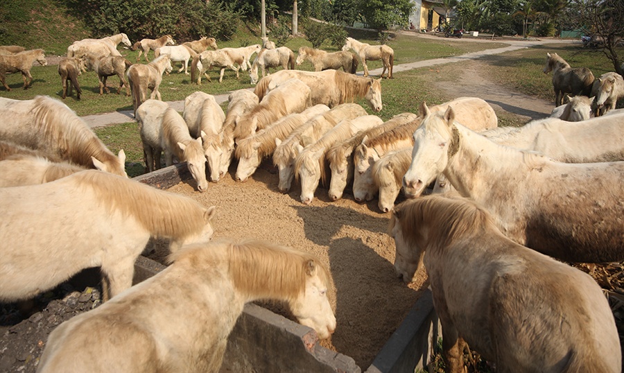 Người chăm nuôi tại trang trại cho biết, việc chăm sóc giống ngựa bạch Việt Nam không quá cầu kỳ, chỉ tốn nhiều thời gian. Ngựa Tây Tạng hưởng chế độ đặc biệt bởi chúng ăn nhiều hơn các con khác.