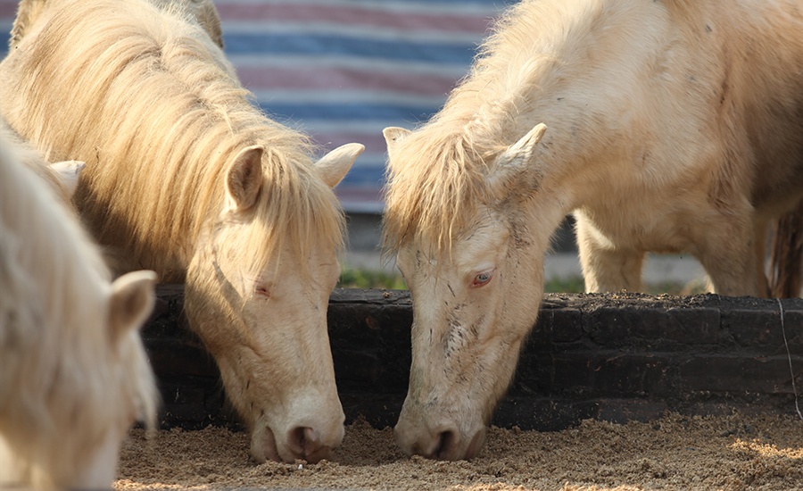 Hơn 100 chú ngựa bạch có màu mắt xanh tại một trang trại bên sông Hồng đang được nghiên cứu chăm sóc đặc biệt để nhân giống bảo tồn và bán với giá cao.