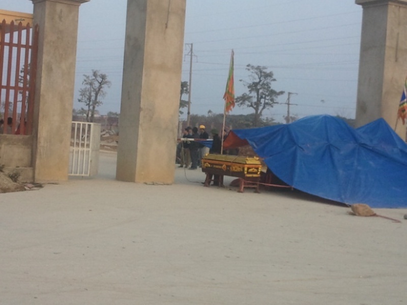 | Theo quan sát, người dân còn mang 2 chiếc quan tài, loa đài, kèn trống đặt trước cổng ra vào của nhà máy khiến toàn bộ khu vực hỗn loạn. “Lần này chúng tôi sẽ yêu cầu cơ quan chức năng vào cuộc vì dân chúng khổ lắm rồi, nhiều người đã chết vì khói bụi. Suốt nhiều ngày nay, dân chúng tôi phải nằm dưới trời giá lạnh, nhịn đói trông chờ phản ứng từ phía công ty”, một người dân bức xúc. |