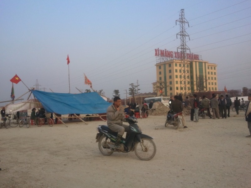 | Từ đầu tuần đến nay, người dân xã Thanh Nghị (huyện Thanh Liêm, Hà Nam) tổ chức biểu tình, lập hàng rào và dựng lều ngủ qua đêm, quây kín cổng Công ty xi măng Xuân Thành để phản đối nạn ô nhiễm khói bụi do đơn vị này gây ra. |