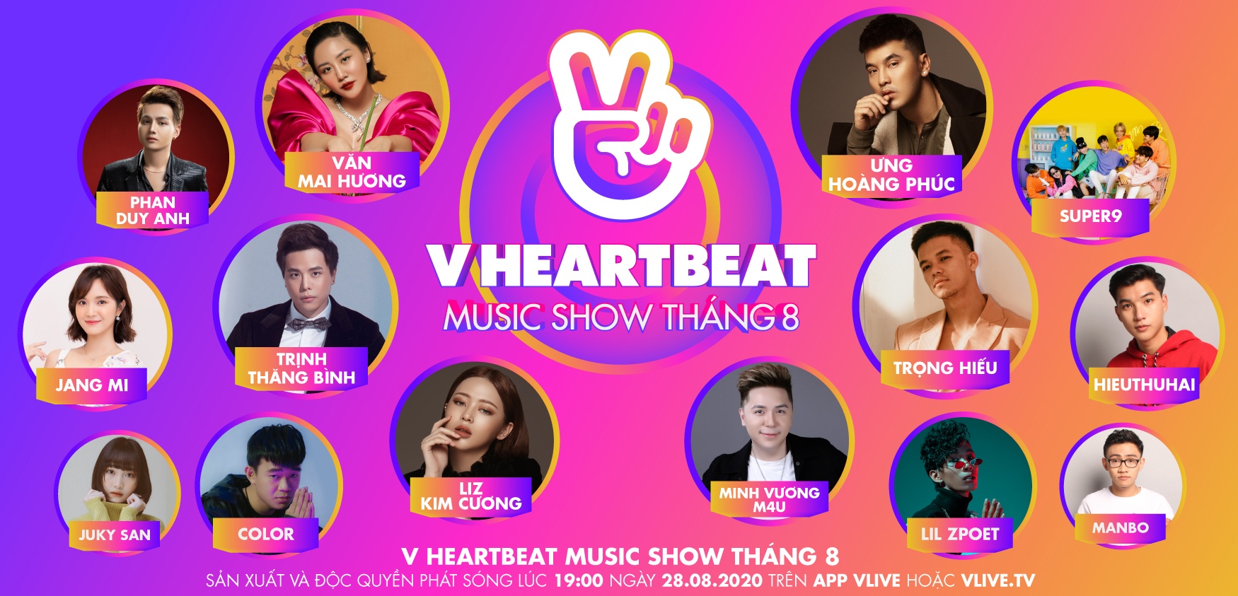 V Heartbeat music show là chương trình âm nhạc hàng tháng của VLive, được thực hiện dựa trên bảng xếp hạng V Heartbeat Rank. Chương trình V Heartbeat music show tháng 8 được phát sóng trực tiếp độc quyền trên VLive TV. Độc giả có thể theo dõi concert tại đây.