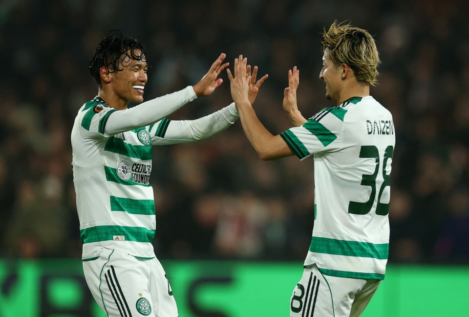 Reo Hatate (trái) và Daizen Maeda mang về chiến thắng cho Celtic. Ảnh: Reuters. |