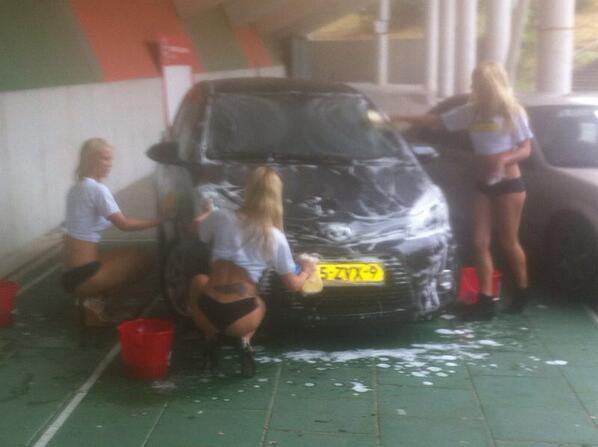 Mới đây, tiền vệ trẻ Victor Palson chia sẻ một hình ảnh rất thú vị trên trang Twitter. Theo đó, xế cưng của anh chàng đang được một dàn người đẹp vô cùng quyến rũ và nóng bỏng dọn rửa.
