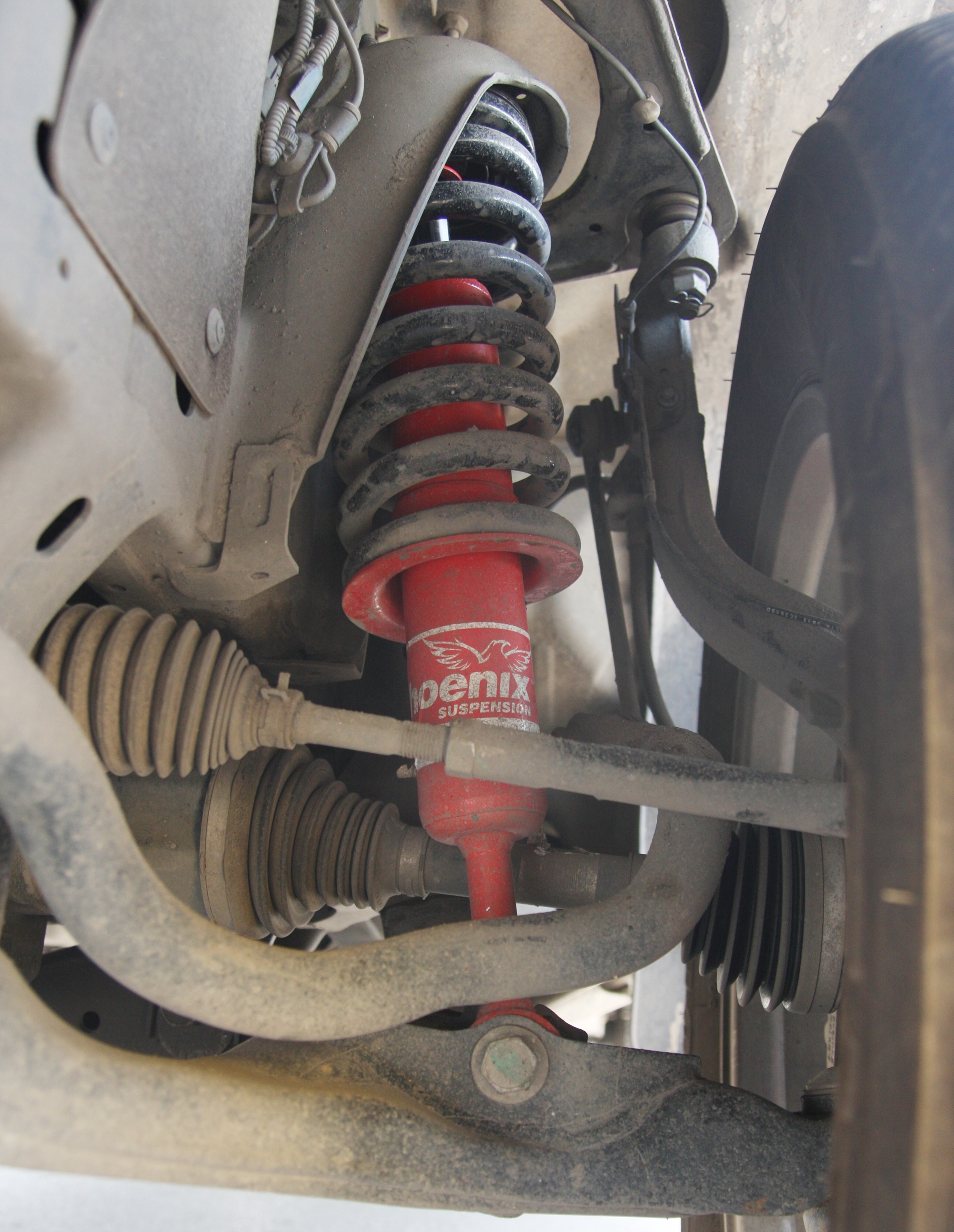 Bộ giảm xóc Red Phoenix thay thế cho giảm xóc nguyên bản gồm 4 lò xo trụ cấu tạo Mono Shock hoặc Twin Tube, trong đó, Pro Ride là dạng giảm xóc Mono với bình ni-tơ áp suất cao, được sử dụng trong lĩnh vực xe đua, ngoài ra còn có một thăng giằng bánh sau. Thời gian thay thế bộ giảm xóc theo xe bằng giảm xóc mới trong khoảng 2 tiếng.