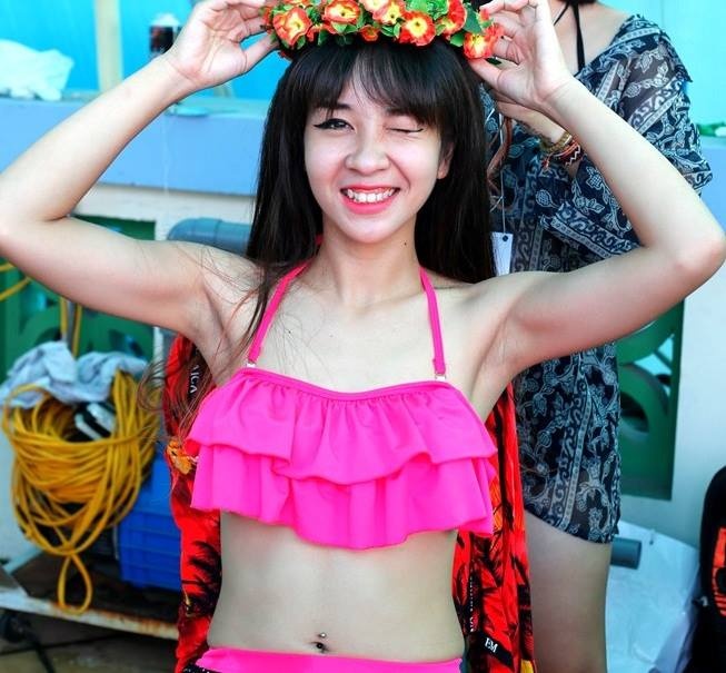 | Nữ dancer của nhóm nhảy SINE với vẻ đẹp ngọt ngào tại chương trình. Tiệc bể bơi kéo dài từ 14-22h với sự tham dự của các DJ, vũ công, rapper hàng đầu. |
