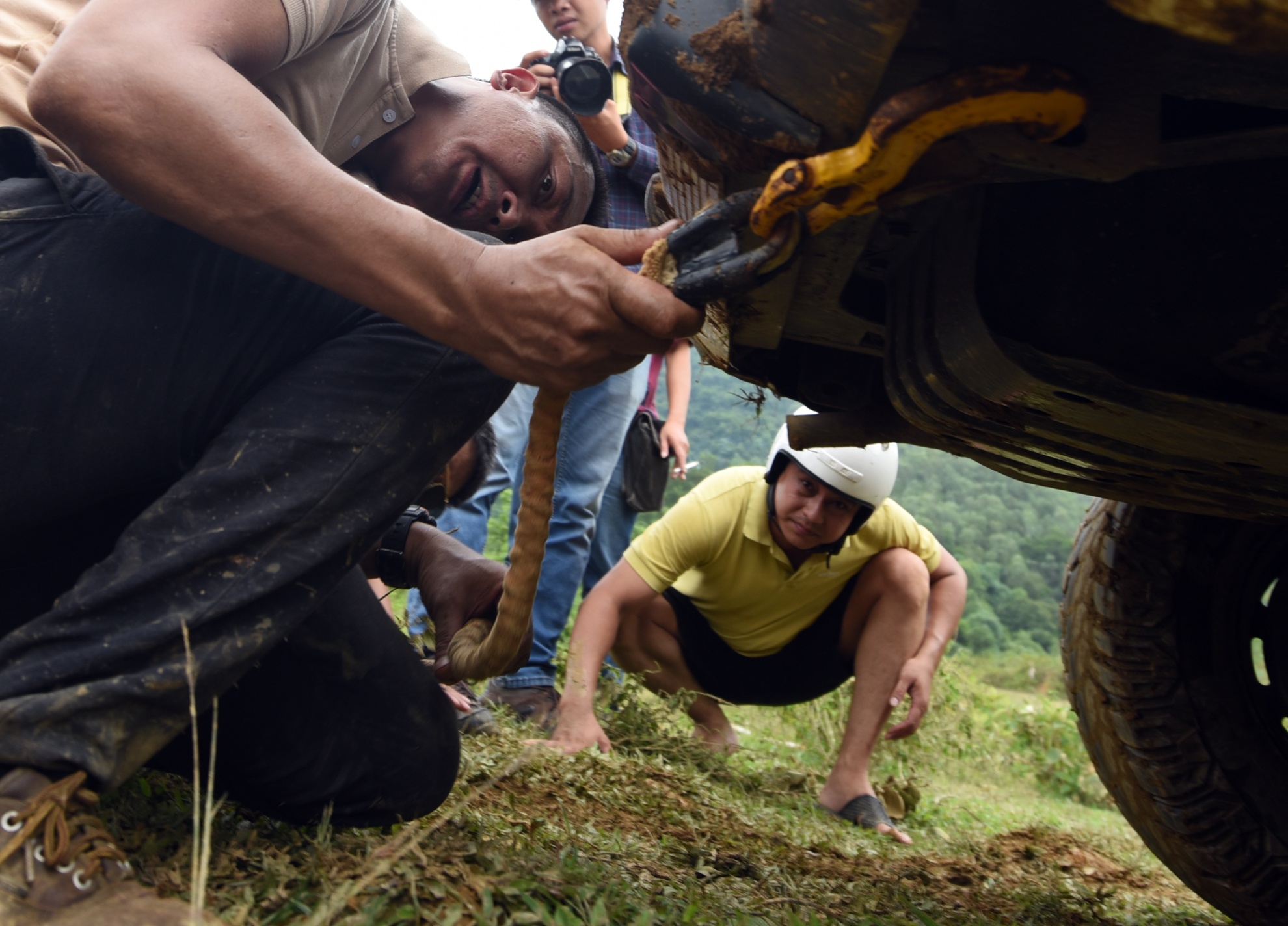 Ngoài ra, họ phải nhanh chóng khởi động tời kéo và tìm điểm vững chắc giúp xe có thể trồi lên khỏi rãnh nước.