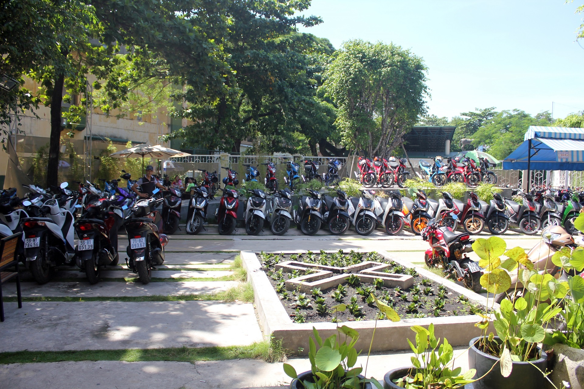 | Từ 8h sáng, hàng chục chiếc xe đã tụ họp tại khuôn viên quán và xếp thành hàng dài. |