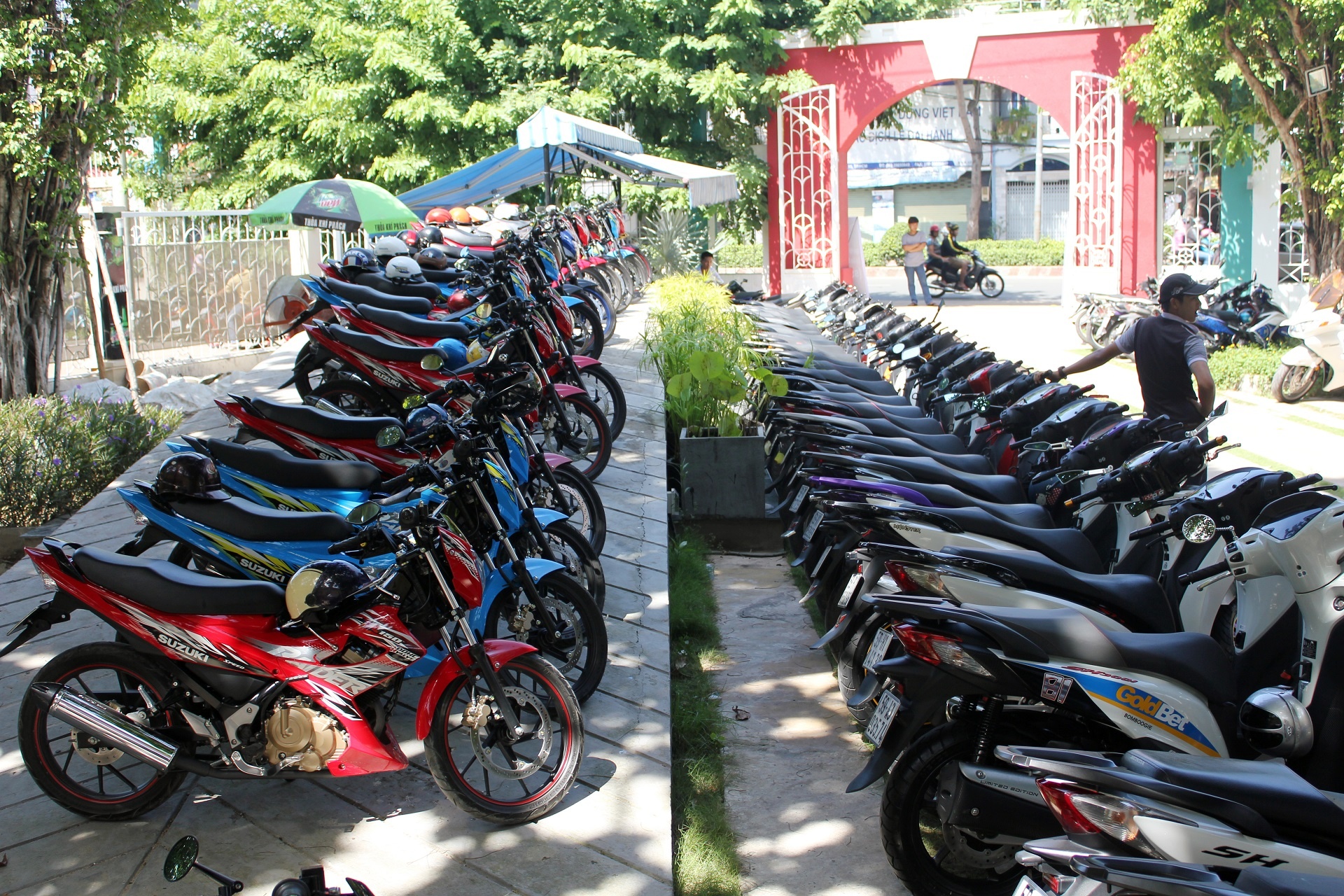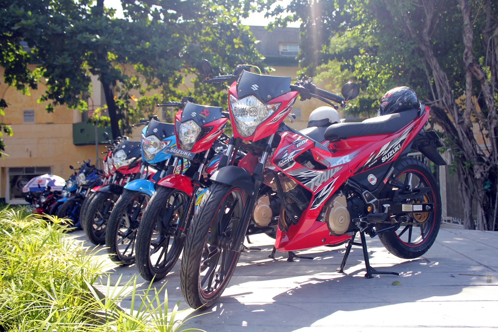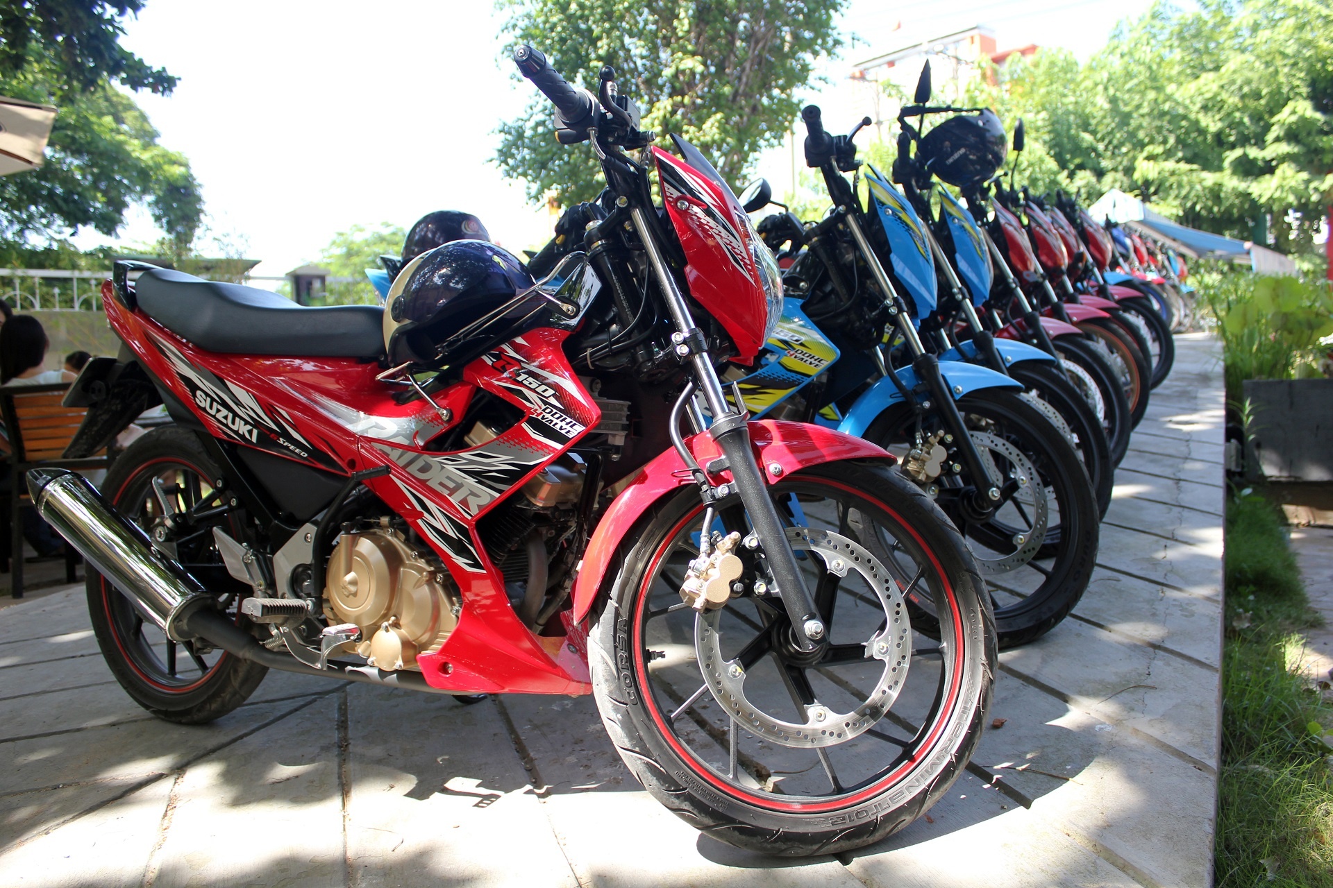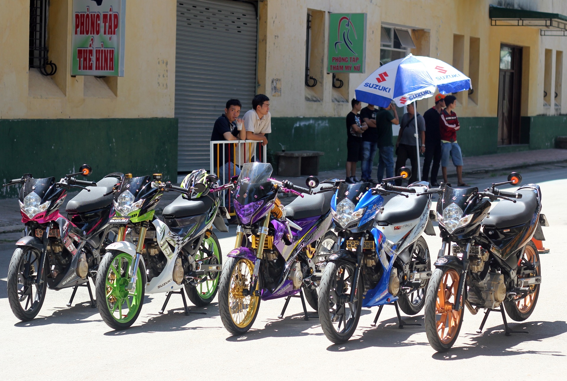 | Trong số 5 chiếc Raider này, 2 chiếc màu xanh và tím đã từng tham gia gian hàng của Suzuki tại Vietnam Motorbike Festival 2014 và đã nhận được sự quan tâm của khách tham quan. |
