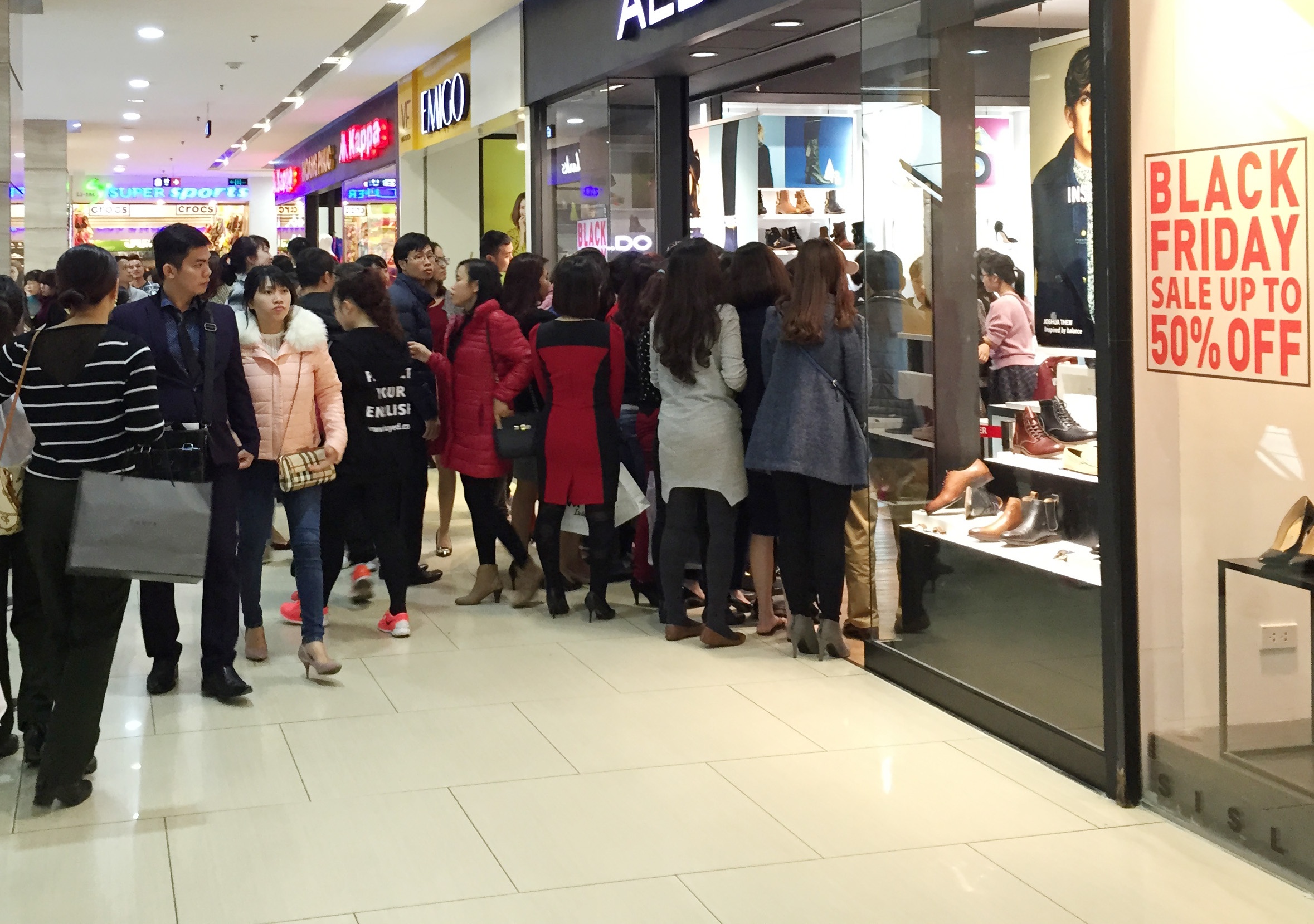 | Nhiều chị em tranh thủ nghỉ sớm, thậm chí, trốn làm để chen nhau mua hàng hiệu giảm giá ngày Black Friday. Ảnh: Diệp Sa. |