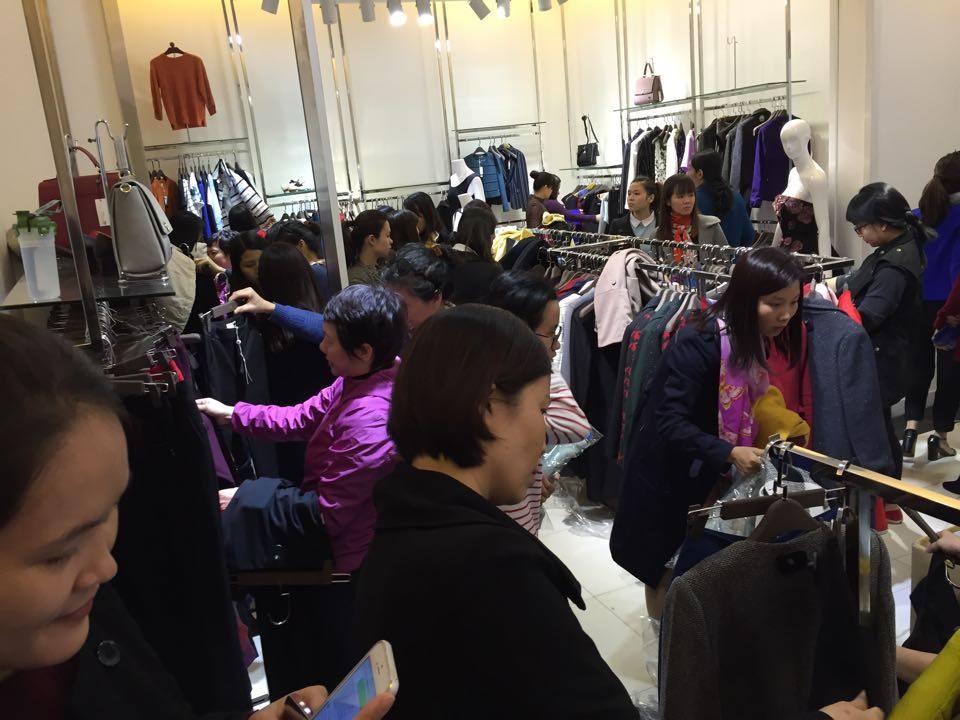 Theo bảo vệ gian hàng của thương hiệu thời trang trên đường Bà Triệu (Hà Nội), nơi đây chật kín khách ngay từ đầu giờ sáng. Bên trong, hàng trăm khách tranh nhau mua hàng trên diện tích chỉ hơn 60 m2. Tới 10h30, nhiều mẫu áo, váy, giày, túi hợp mốt đã hết. Số ít còn lại trên kệ là những size cỡ đại hoặc quá nhỏ, kén khách.