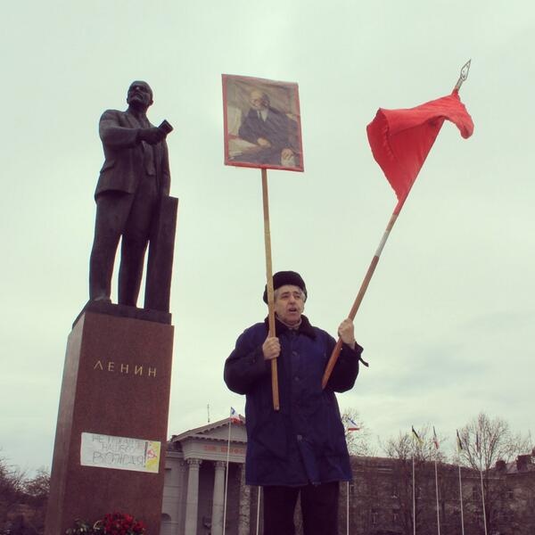 | "Chúng tôi sẽ không để kẻ nào phá hoại tượng của Lenin", người đàn ông này tuyên bố. Ảnh: RT |