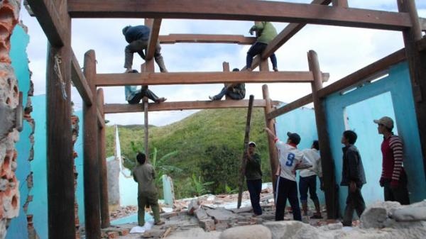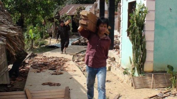 | Sau khi dỡ nhà, người dân mang những vật liệu còn dùng được đi. |