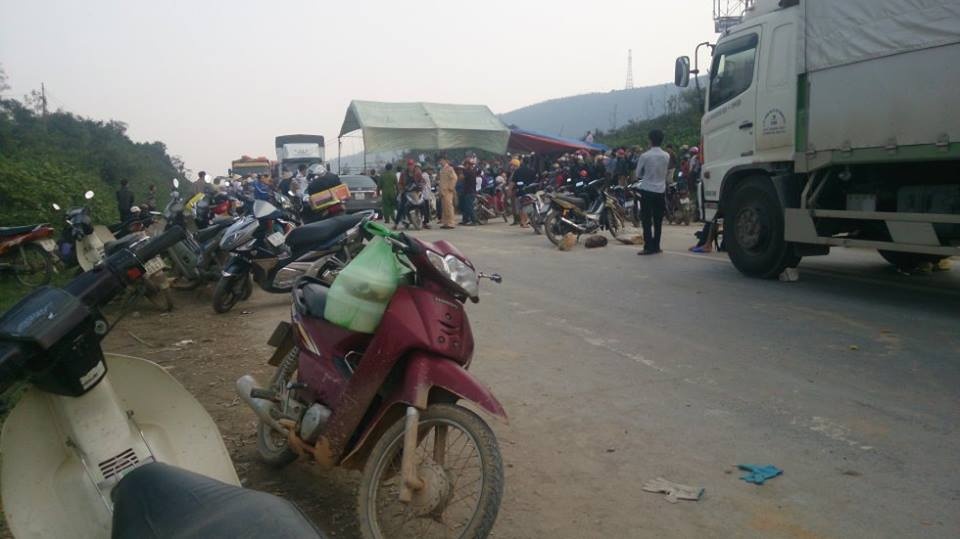 | Sau khi gây tai nạn, lái xe tải đã bỏ chạy. Ít phút sau, người dân có mặt tại hiện trường, bức xúc trước hành động bỏ trốn của lái xe tải nên họ đã dựng rạp ngay tại hiện trường, trên quốc lộ 1A để phản đối. |